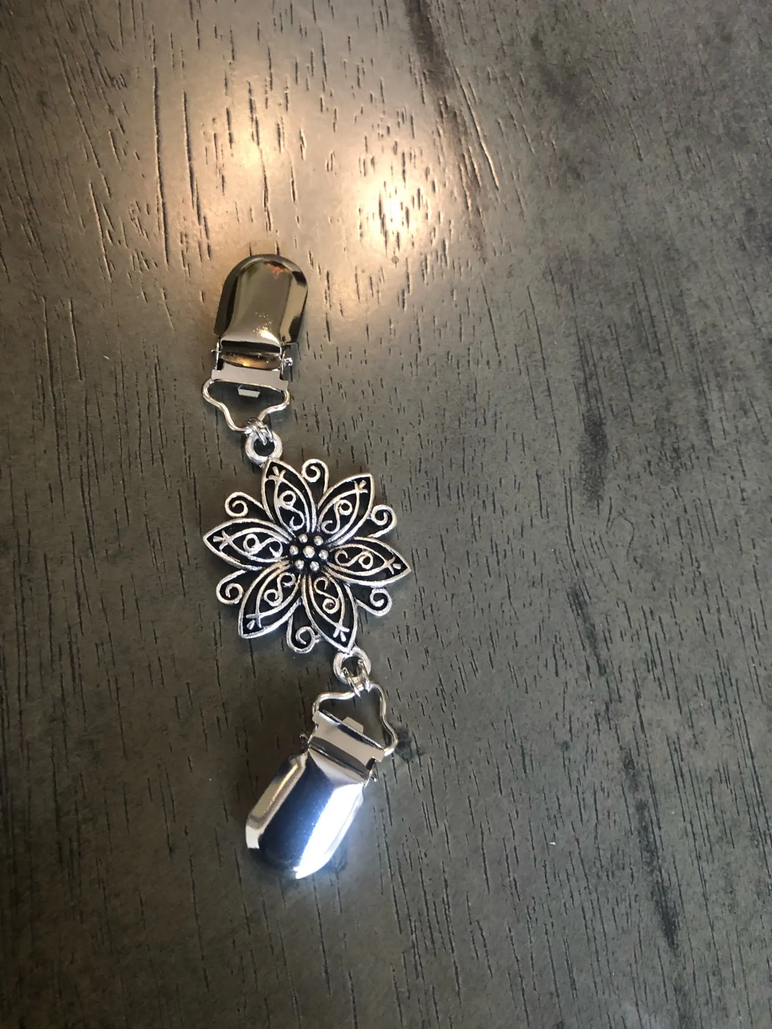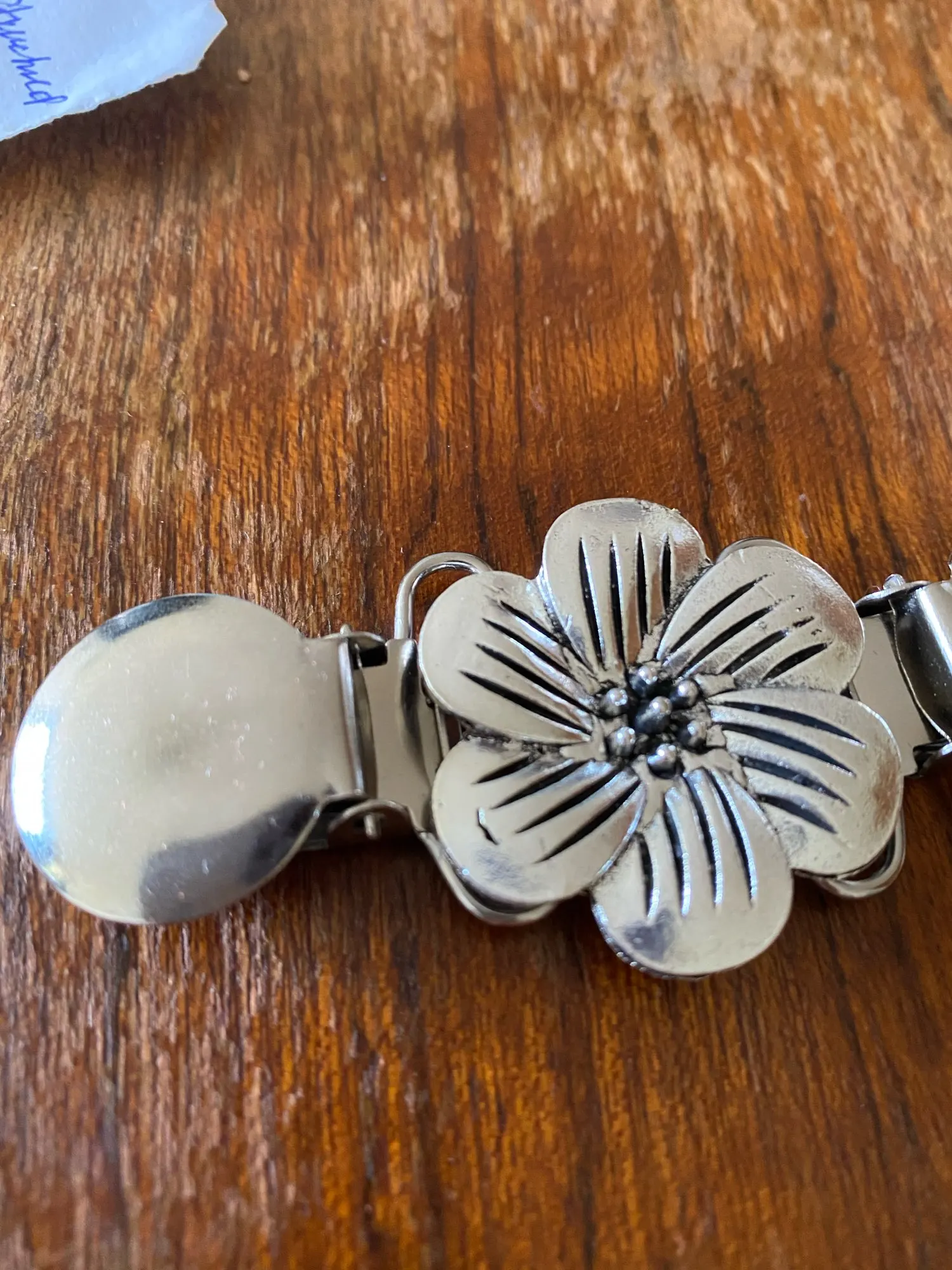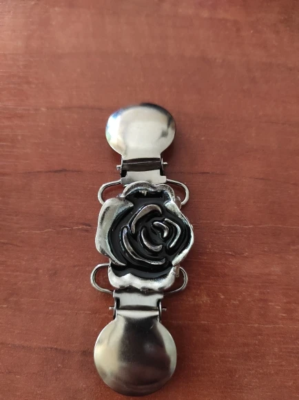 Зажим пришел быстро. Я думала он маленький по размерам. А на самом деле центральный цветочек см 3,5 в диаметре, весь зажим 12 см. Качество отличное. Спасибо.