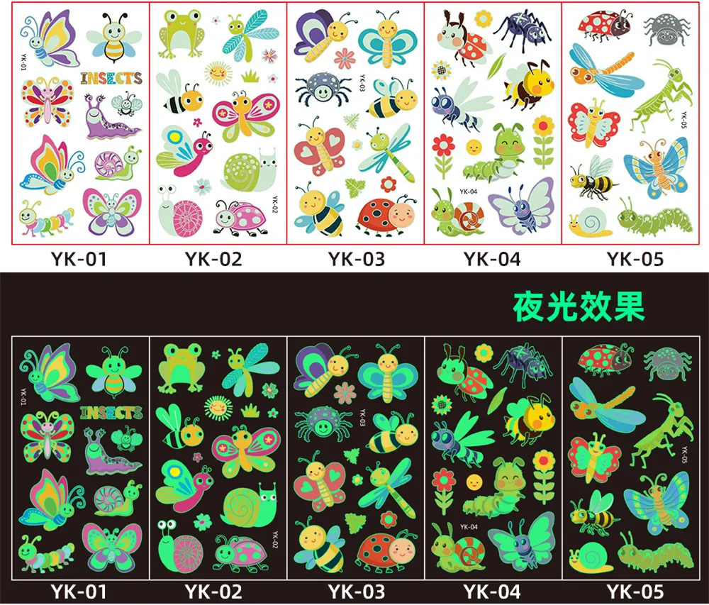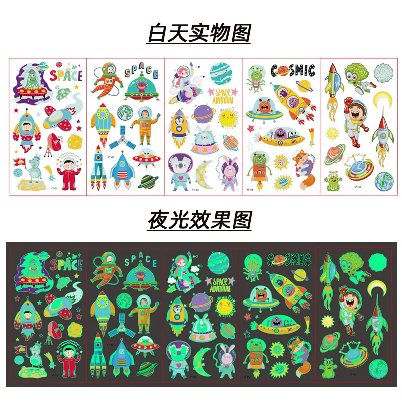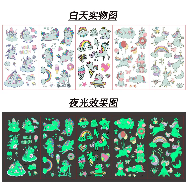 5pcslot Luminous Tattoo Face Temporary Color Unicorn Mermaid Dinosa...
