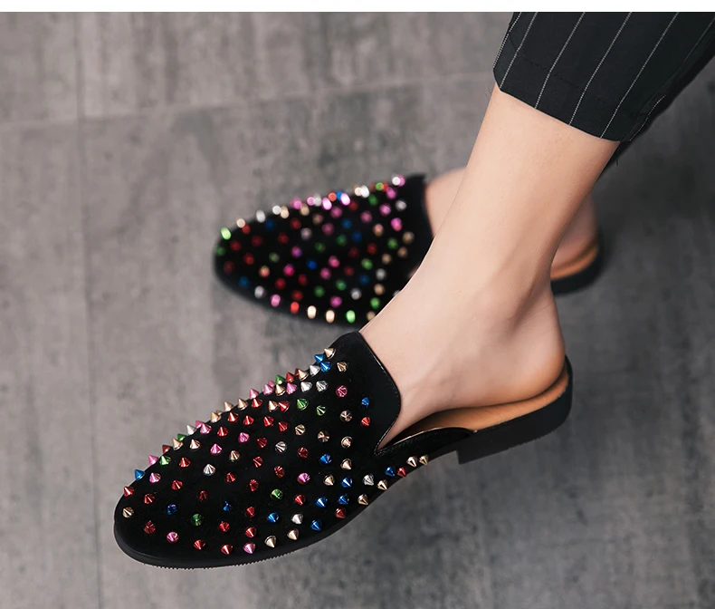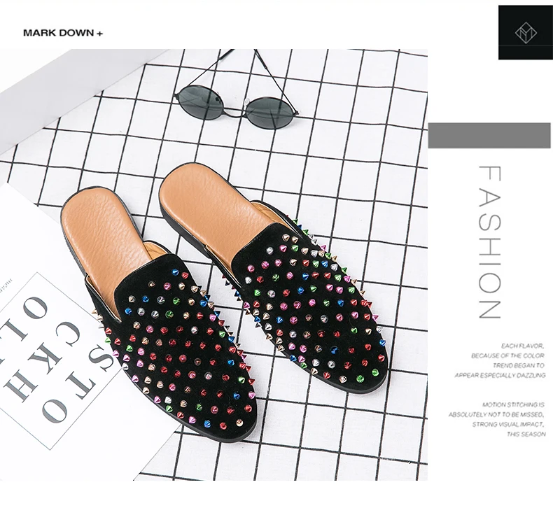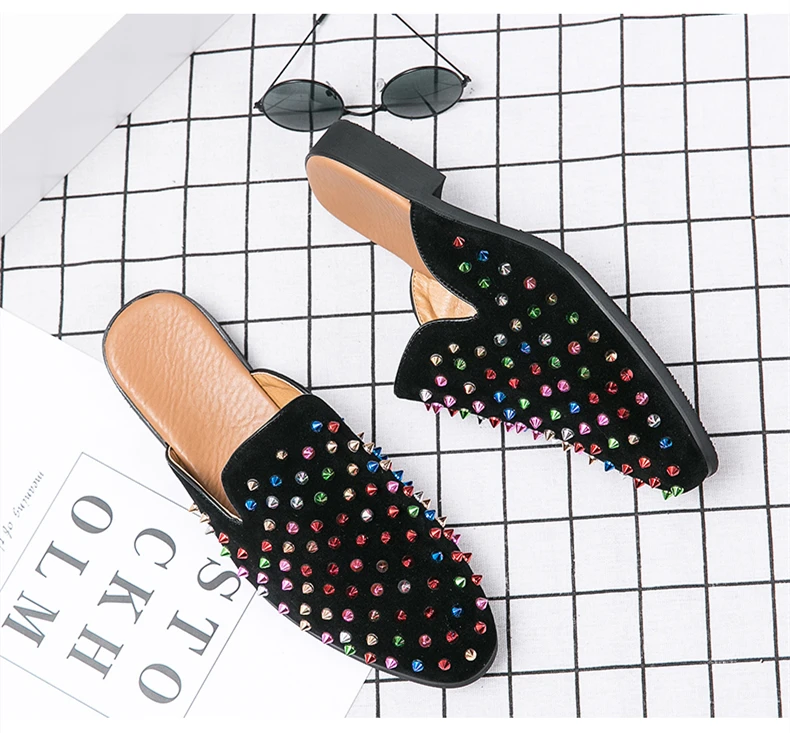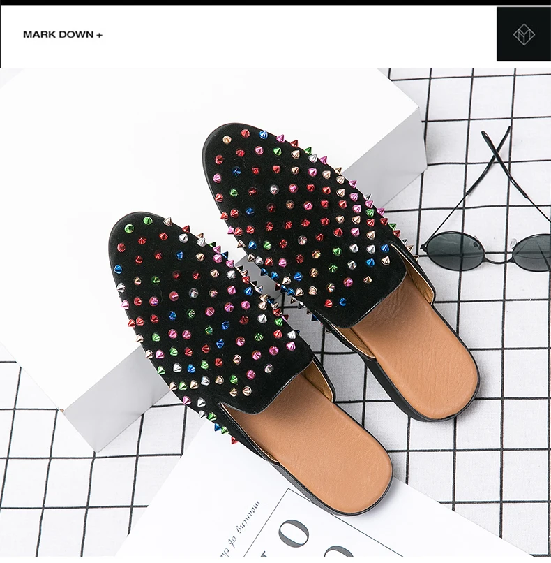 Кожаные туфли YRZL, мужские тапочки, украшение с заклепками, повсед...
