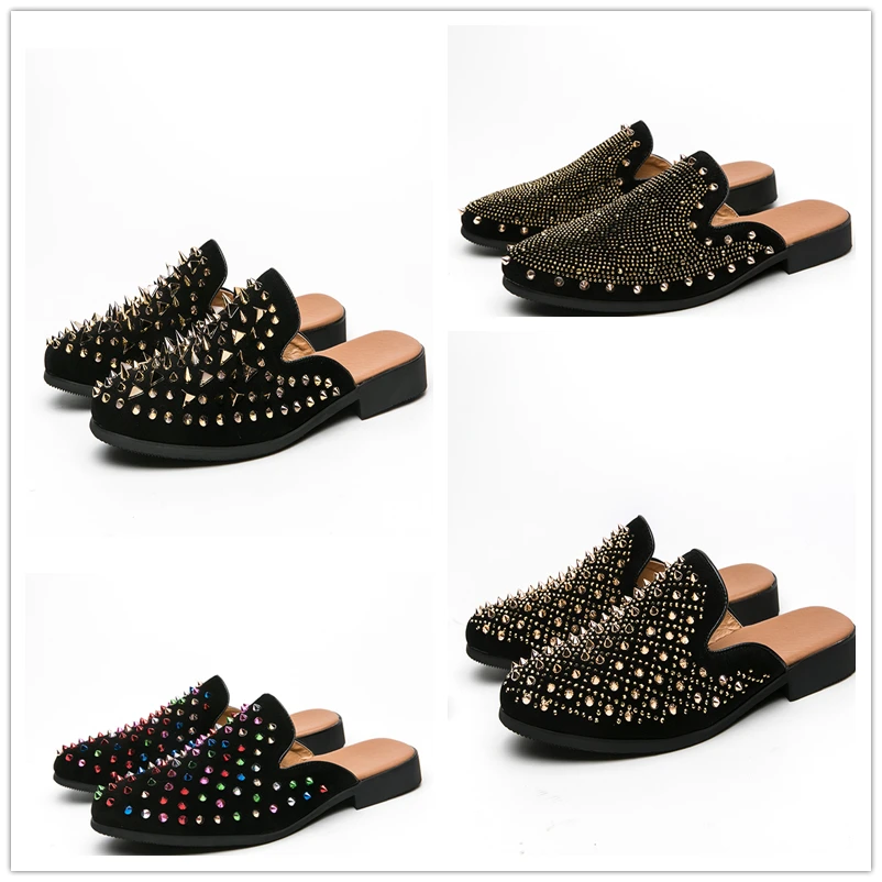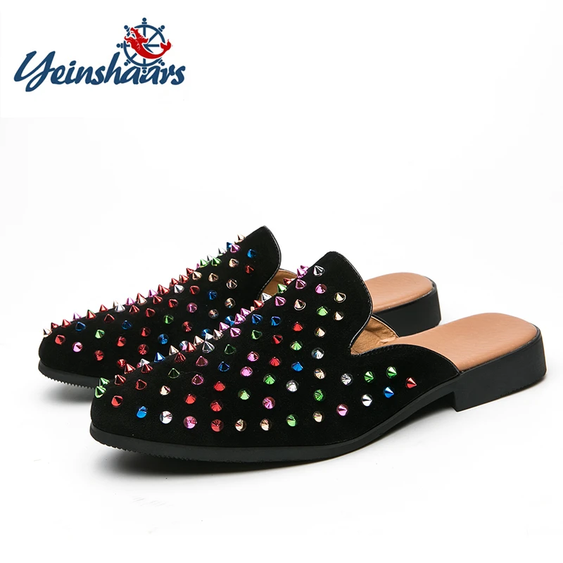 Летние Новые мужские туфли YEINSHAARS Babouche с заклепками, очаровательные слипоны в британском стиле, дизайнерские мужские повседневные шлепанцы, замшевые туфли, женская обувь 47