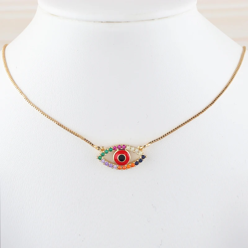 Счастливый глаз Фатима Радуга сглаза кулон ожерелье медный золотой ...