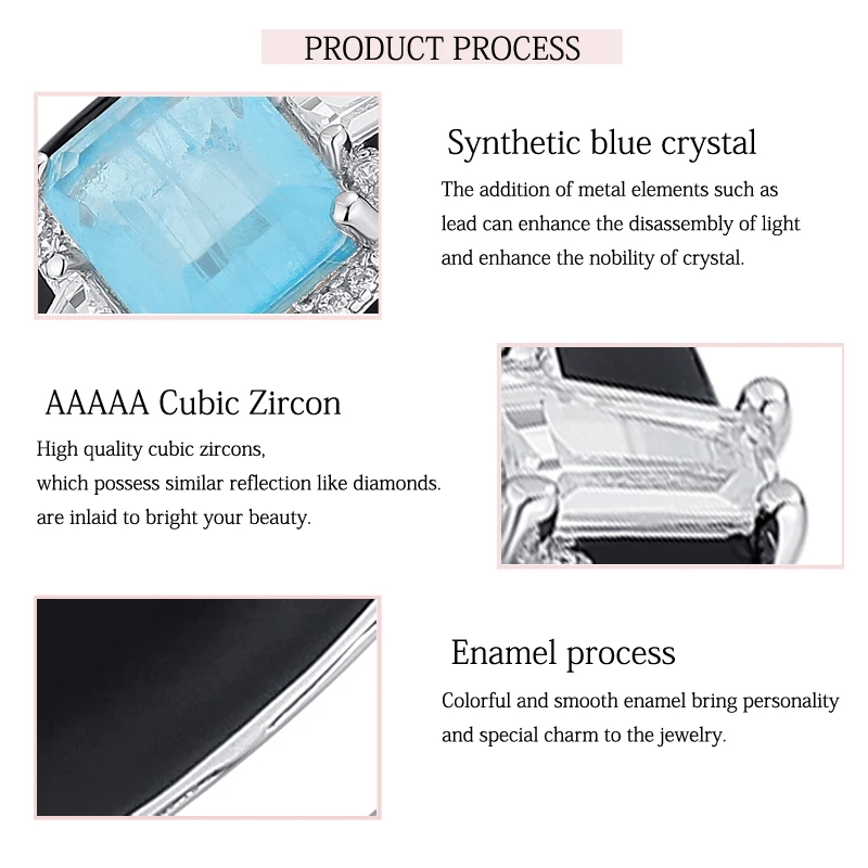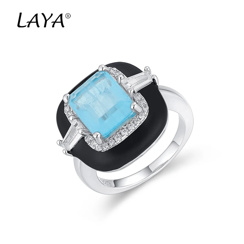 Стерлингового Серебра 925 Пробы Мода Высокое Качество Циркон Натуральный Синий Модный Камень Черная Эмаль Квадратное Кольцо Для Женщин Подарок Изысканные Ювелирные изделияя