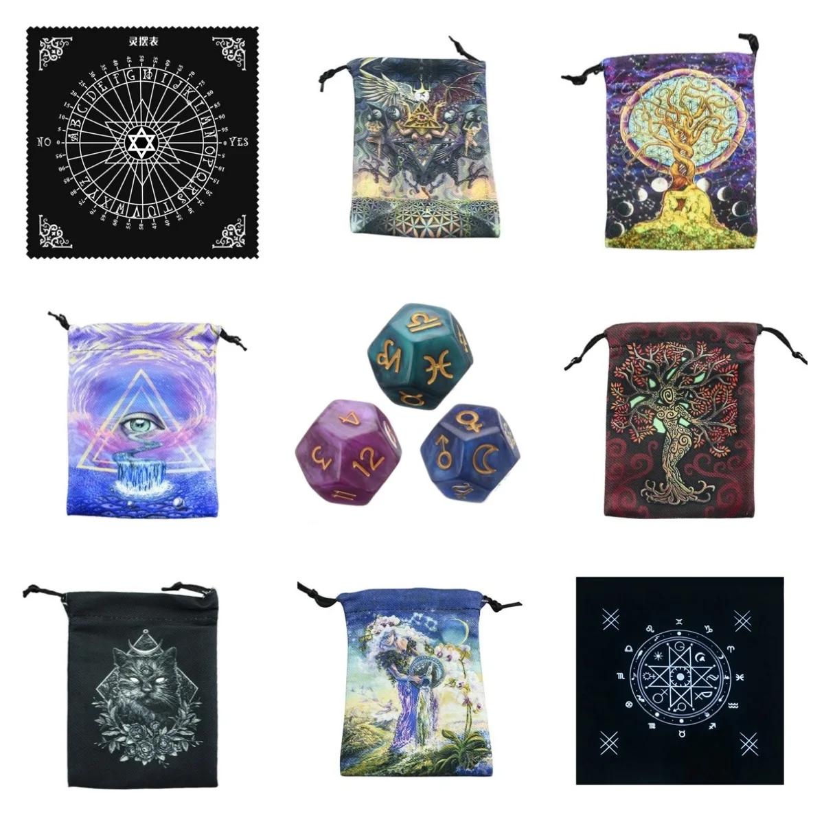 Скатерть с карточками Таро 60x60 см, астрологическое гадание, алтар...