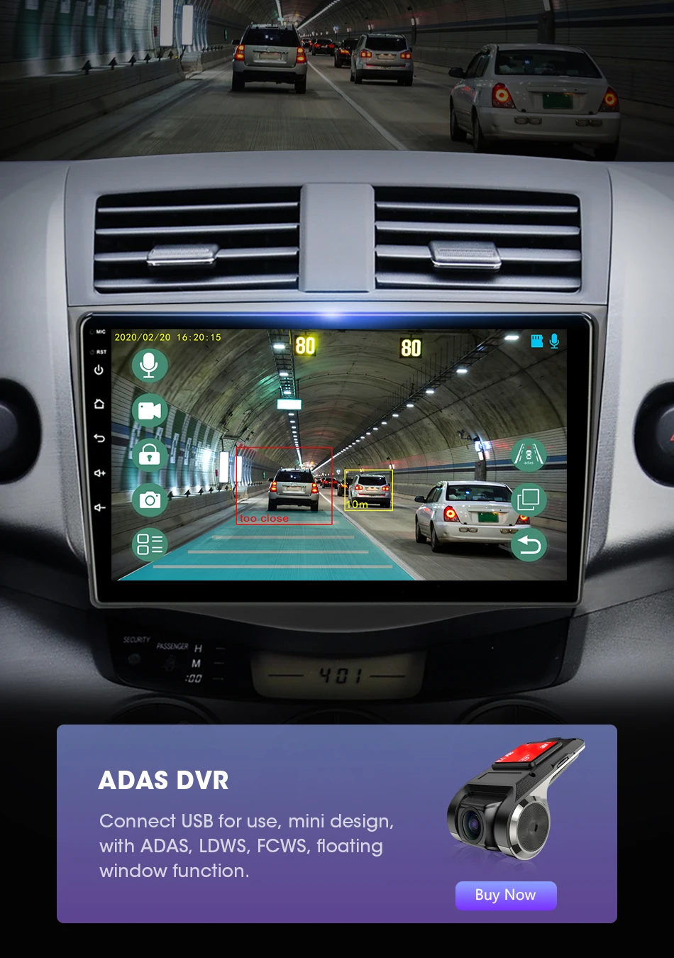 Поддерживает подключение к видеорегистраторУ ADAS. ADAS DVR имеет несколько встроенных ассистивных технологий вождения, вставляя высококачественную карту памяти TF для записи каждого момента вашего вождения.