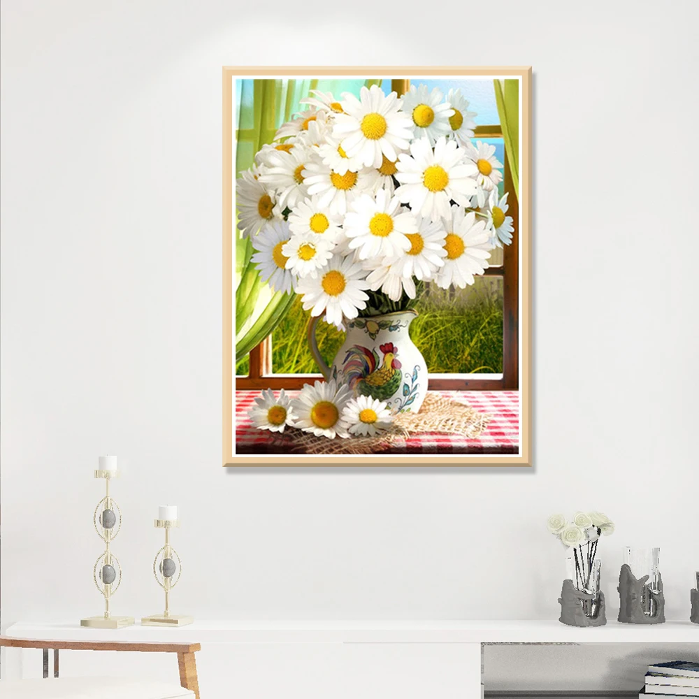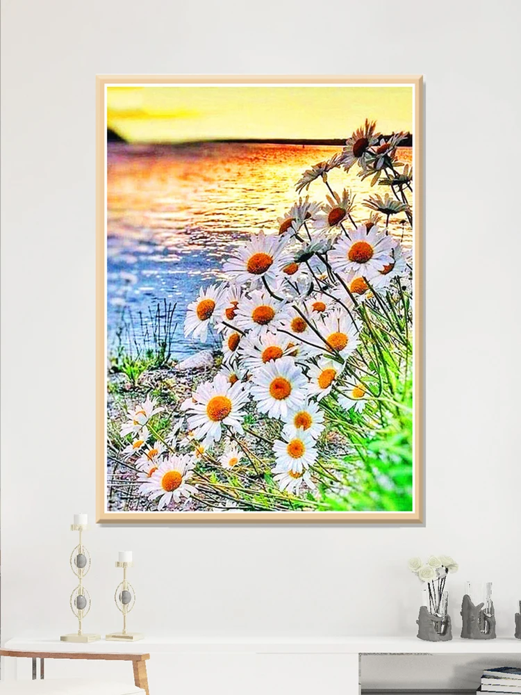 Картина для творчества, подарок на заказ, 5D сделай сам, маленькая Маргаритка, пейзаж, домашний декор, настенная живопись, квадратная круглая Алмазная мозаика, вышивка крестиком
