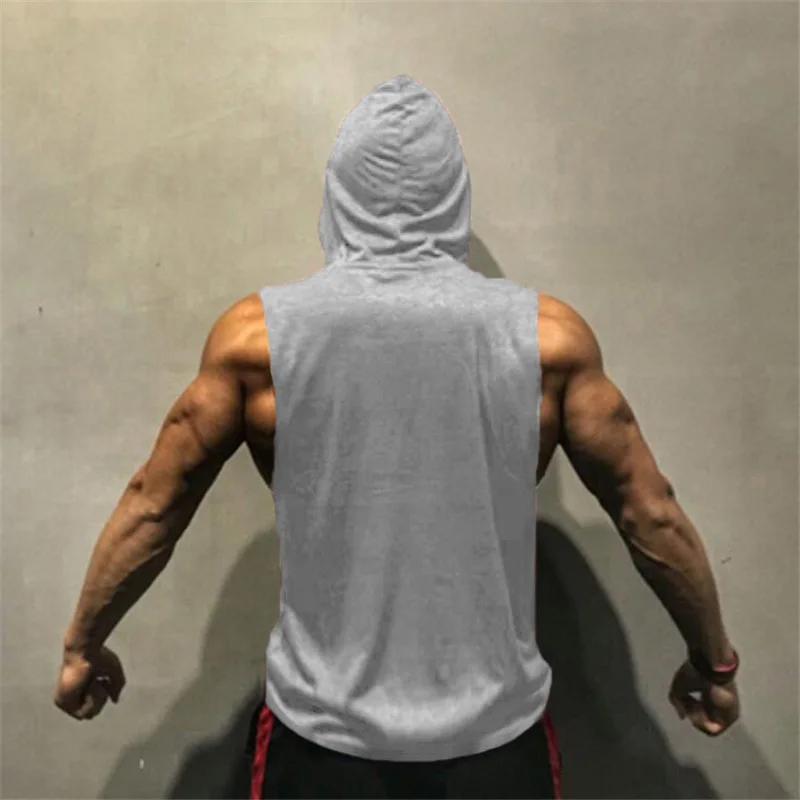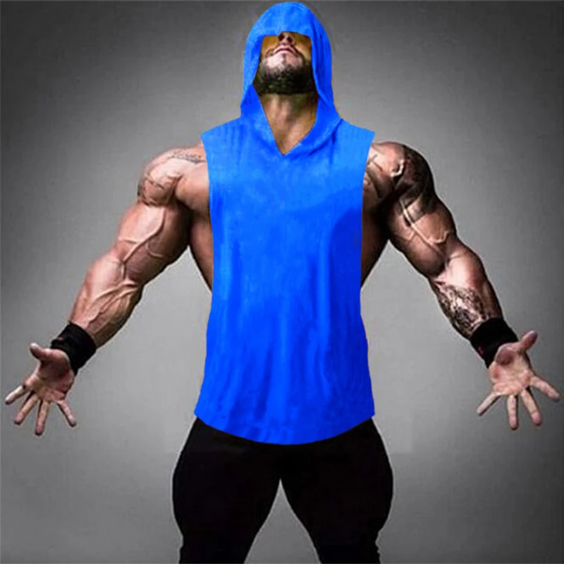 Майка мужская с капюшоном, хлопок, без рукавов, спортивная одежда для бодибилдинга, тренировок