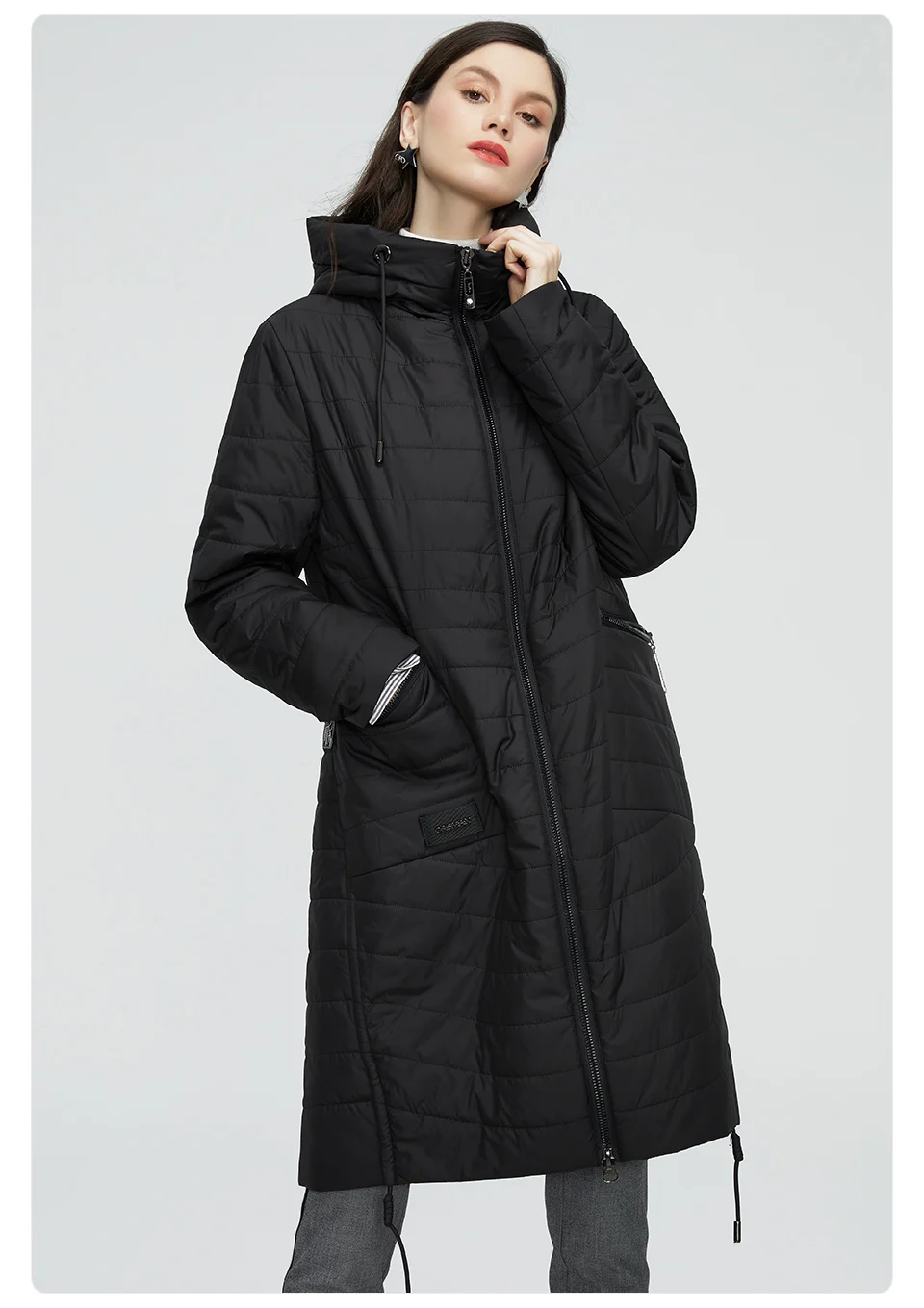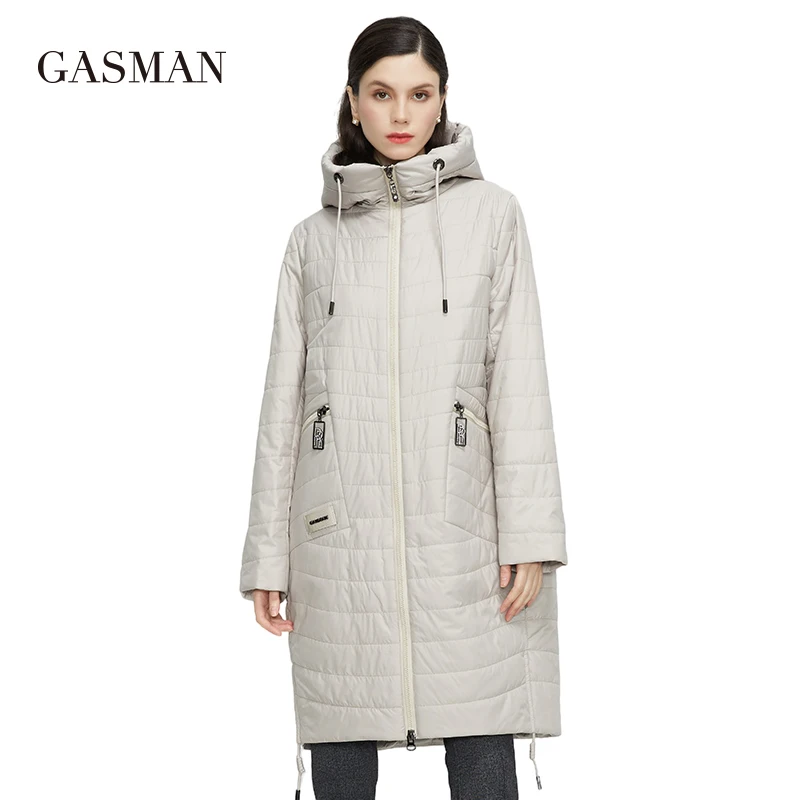 Куртка GASMAN, 2021, весна-осень, женская модная Повседневная Длинная парка, пальто с подкладкой, с воротником-стойкой и капюшоном, женские куртки, 81858