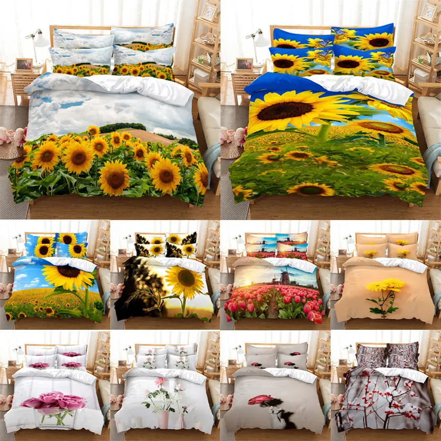 3D HD лоскутное одеяло с цветами чехол для подушки Чехол с розовым подсолнухом Комплект постельного белья льняной пододеяльник тюльпан King Queen Twin Single Double 3 шт. 2 шт. Текстиль