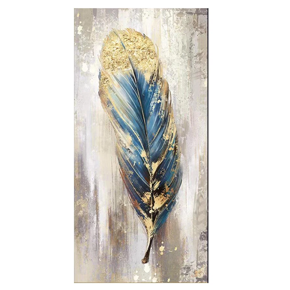 Большая Алмазная картина 5d «сделай сам», абстрактная картина с золотыми перьями, алмазная вышивка, полные квадратные круглые стразы, мозаичная картина-пазл,