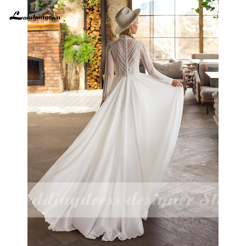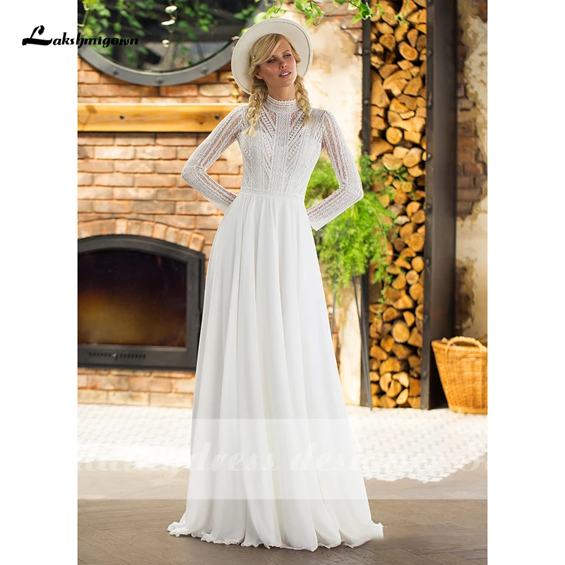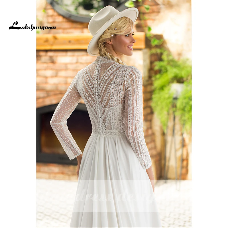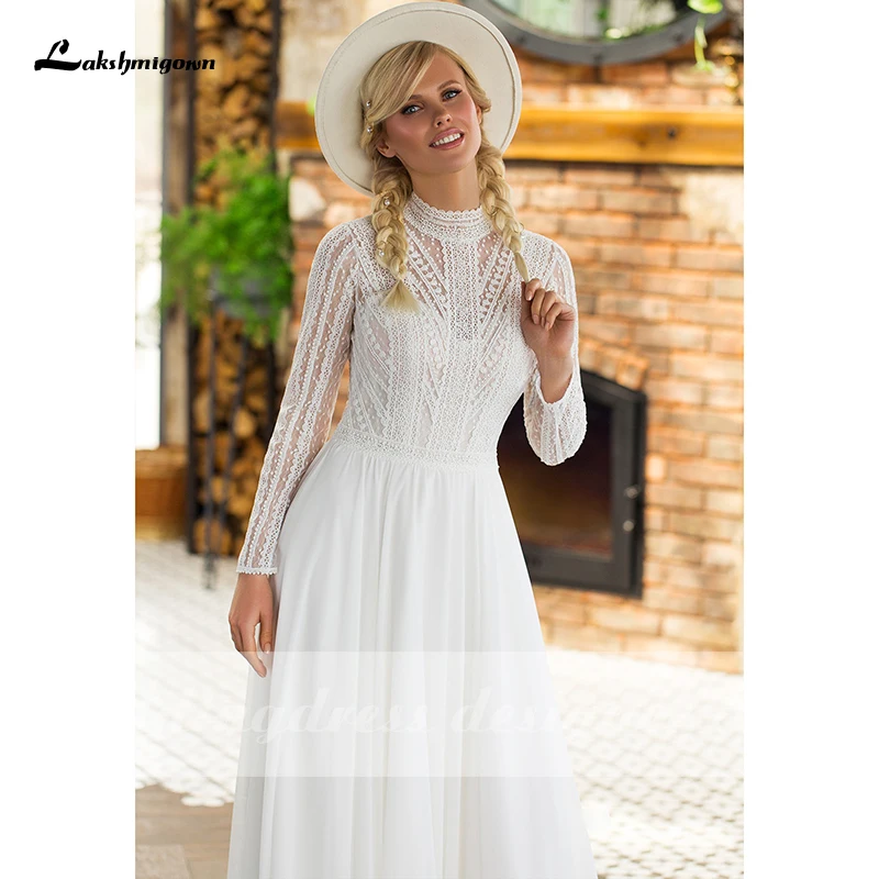 Lakshmigown Boho кружевное свадебное платье с одежда с длинным рукавом с высокой шеей шифоновый свадебное пляжное платье Простые Свадебные платья халат de Mariage