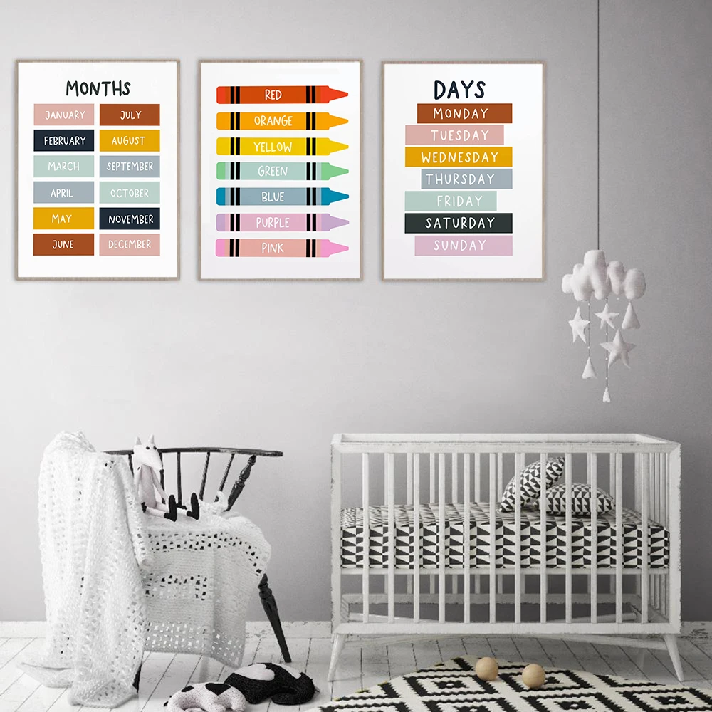 Дней месяцев, шаблоны, цифры, буквы ABC, настенная Картина на холсте, скандинавские постеры и искусства для детской комнаты, спальни, Декор