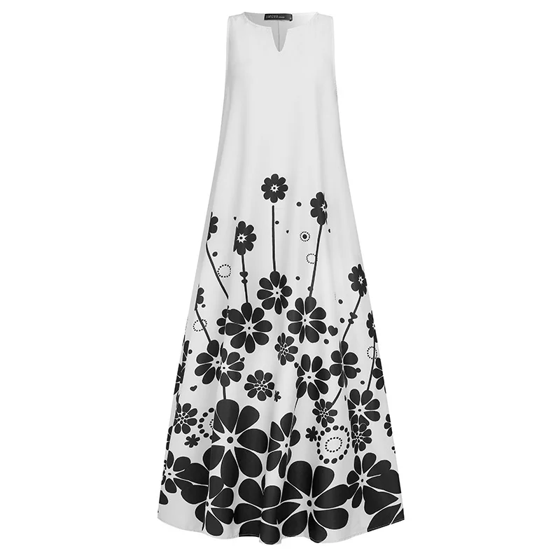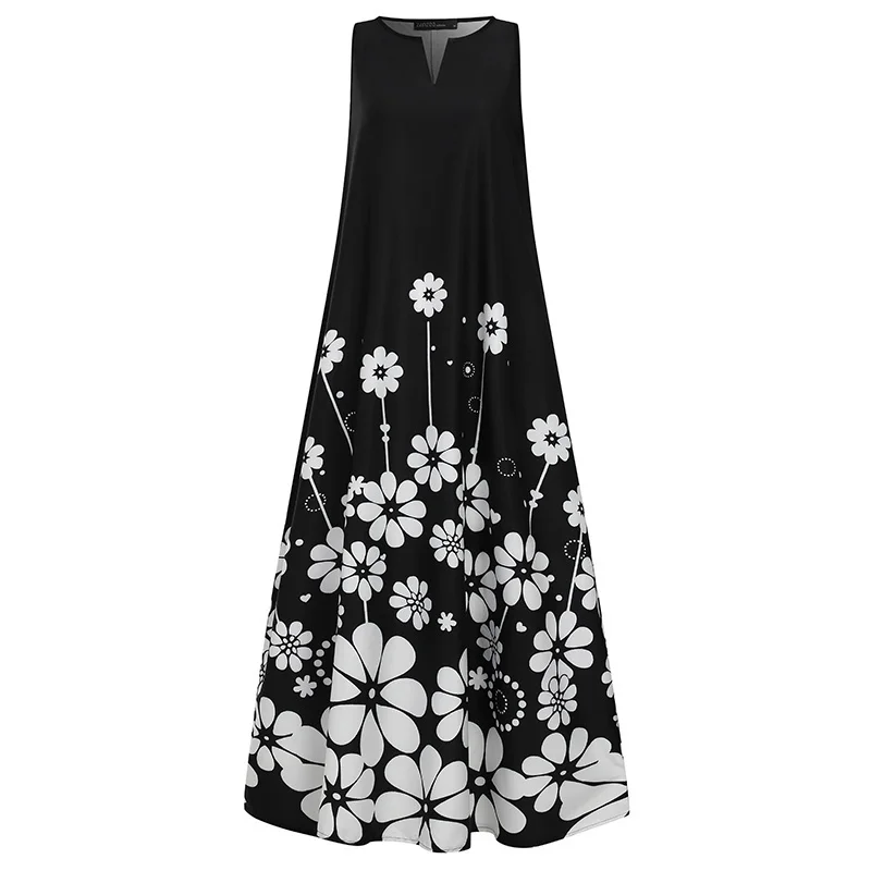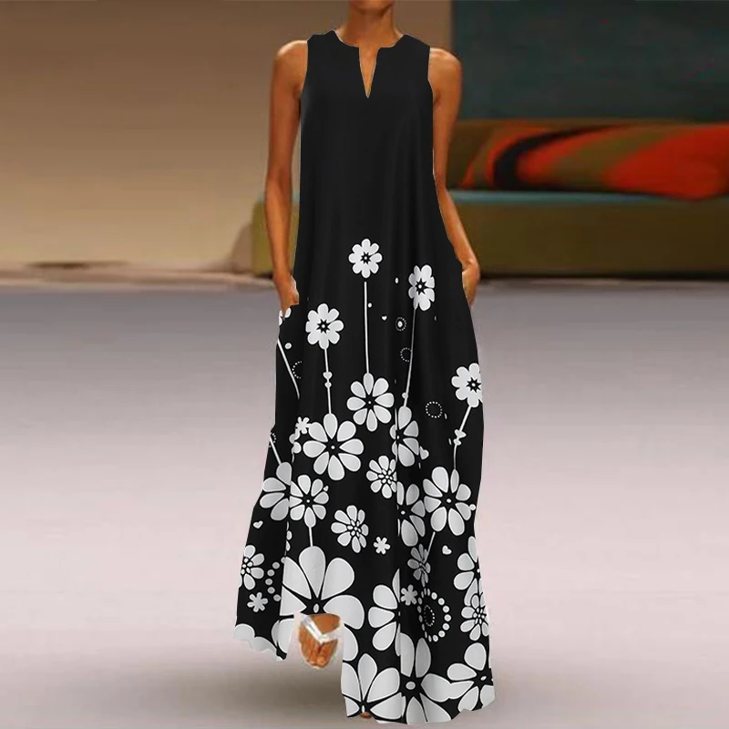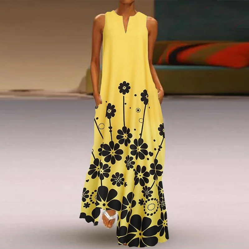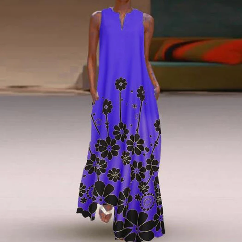Платье женское длинное с цветочным принтом, повседневное свободное пляжное платье макси для размера плюс, на лето