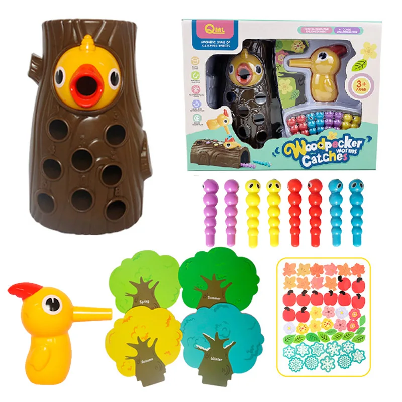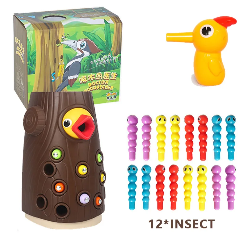 Обучающие игрушки Монтессори, магнитный дятел, съедобные насекомые, кормящие птицы, игрушки для детей, подарки для девочек и мальчиков