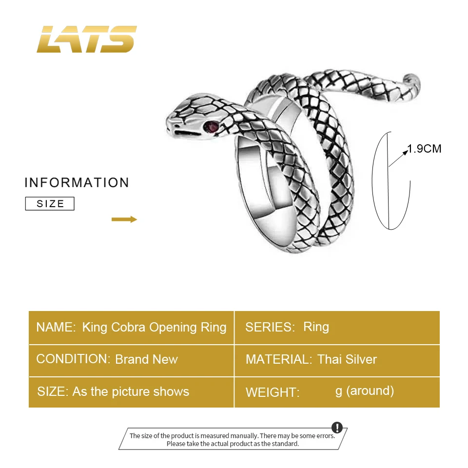 Латы европейские винтажные серебряные кольца змеи для женщин и мужчин King Cobra открытие регулируемое кольцо Модные ювелирные изделия подарок оптовая продажа