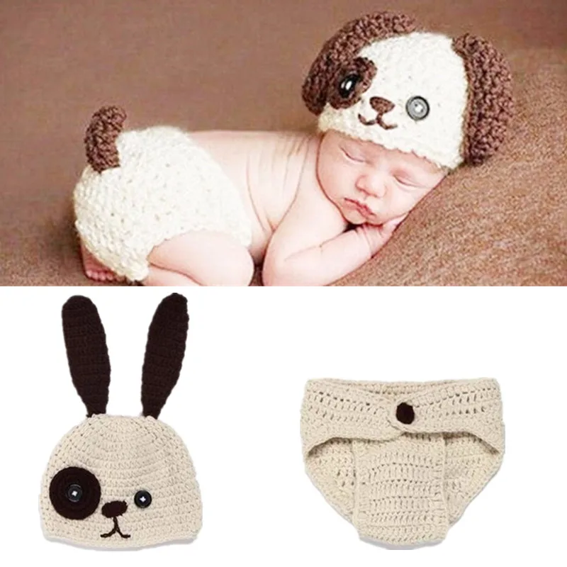 Милая повседневная трикотажная шапочка и подгузник ручной работы в ...
