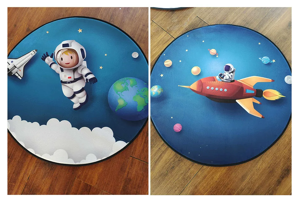 Мультяшный круглый коврик с космосом, астронавтом, Детские милые мягкие губчатые Коврики для пола в спальне, игровой коврик для мальчиков, фланелевый прикроватный коврик