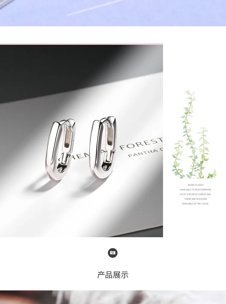 Новый 925 пробы Серебряные серьги простой Глянцевая U-образный 18K ...