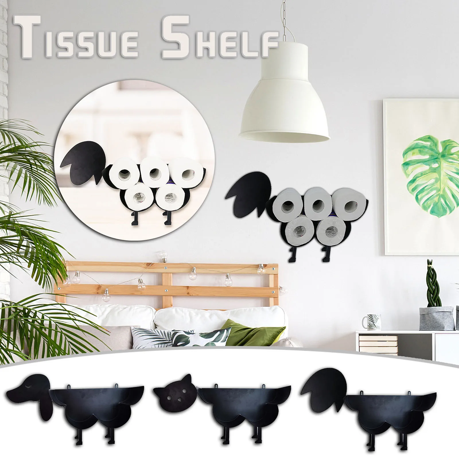 Настенный держатель для туалетной бумаги, Черная овечка, кошка, соб...