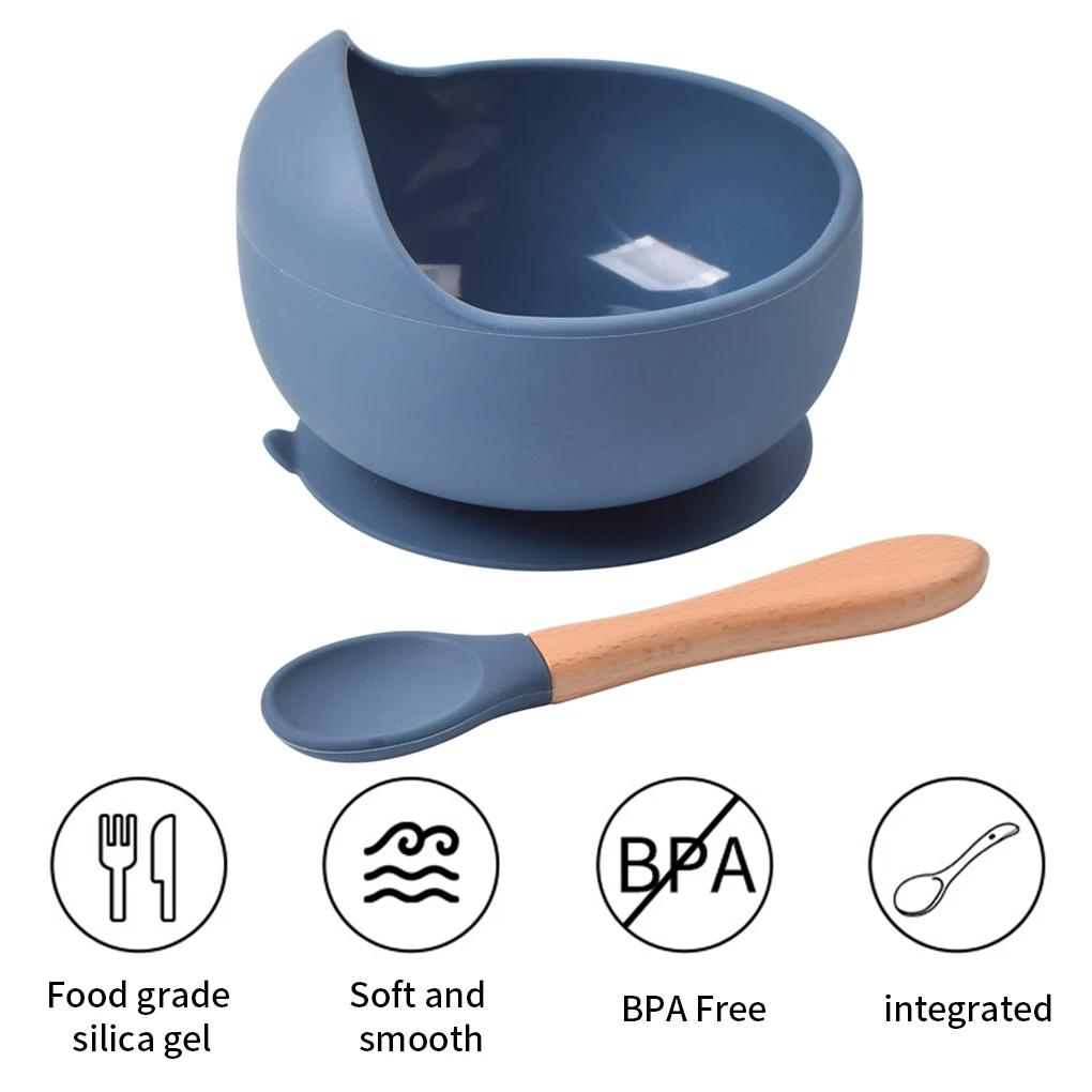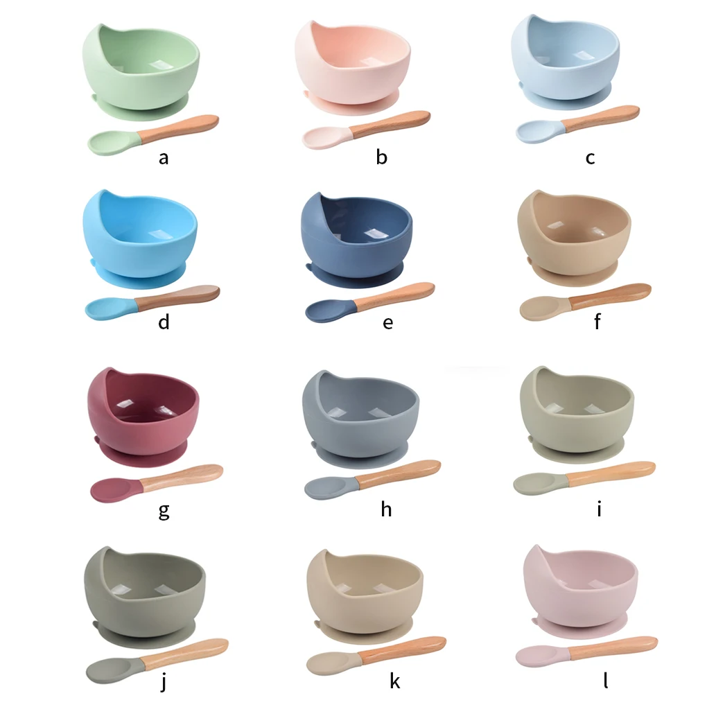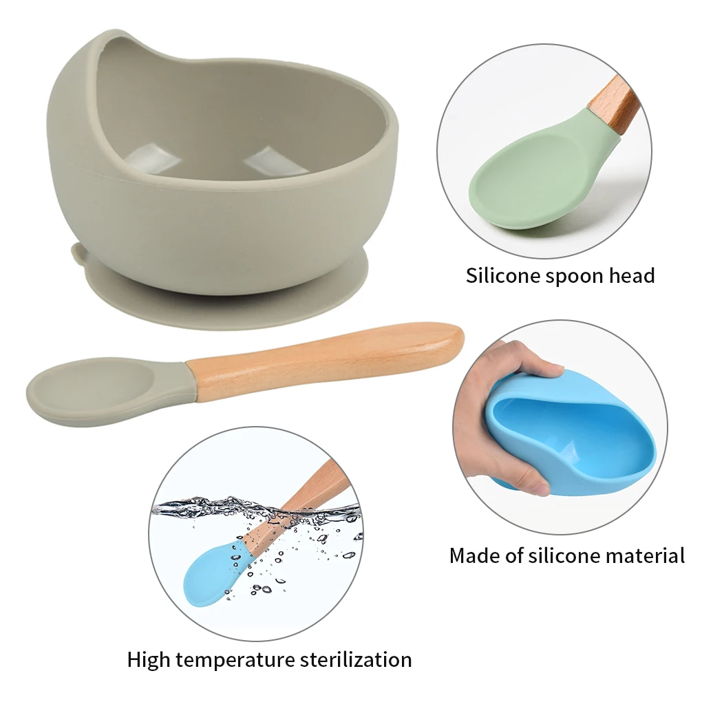 Силиконовая миска для кормления детей, водонепроницаемая посуда, ложка, не скользит, без БФА, силиконовая тарелка, Набор детских тарелок