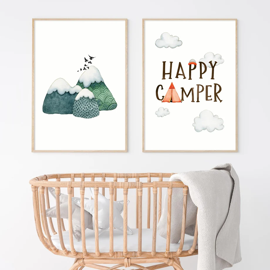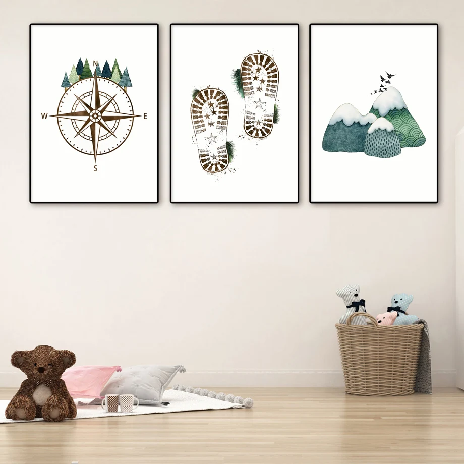 Компас для горного леса, палатка для путешествий, настенная живопись, холст, мультфильм, скандинавские постеры и принты, настенные картины для детской комнаты, Декор