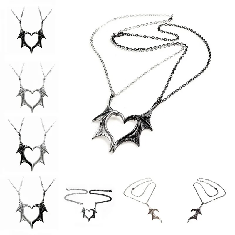 Ожерелье в стиле панк с крыльями сердца для женщин и мужчин Vinatge Модный кулон с крыльями для влюбленных дружба Пары Ожерелье Подарок