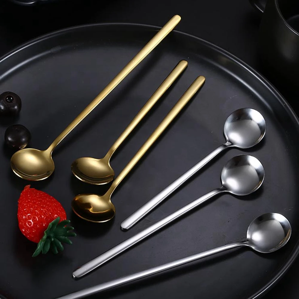 1 шт. Нержавеющаясталь круглая чайная, кофейная ложка для мороженого Десерт длинной ручкой ложка, столовые приборы Кухня столовая посуда для бара
