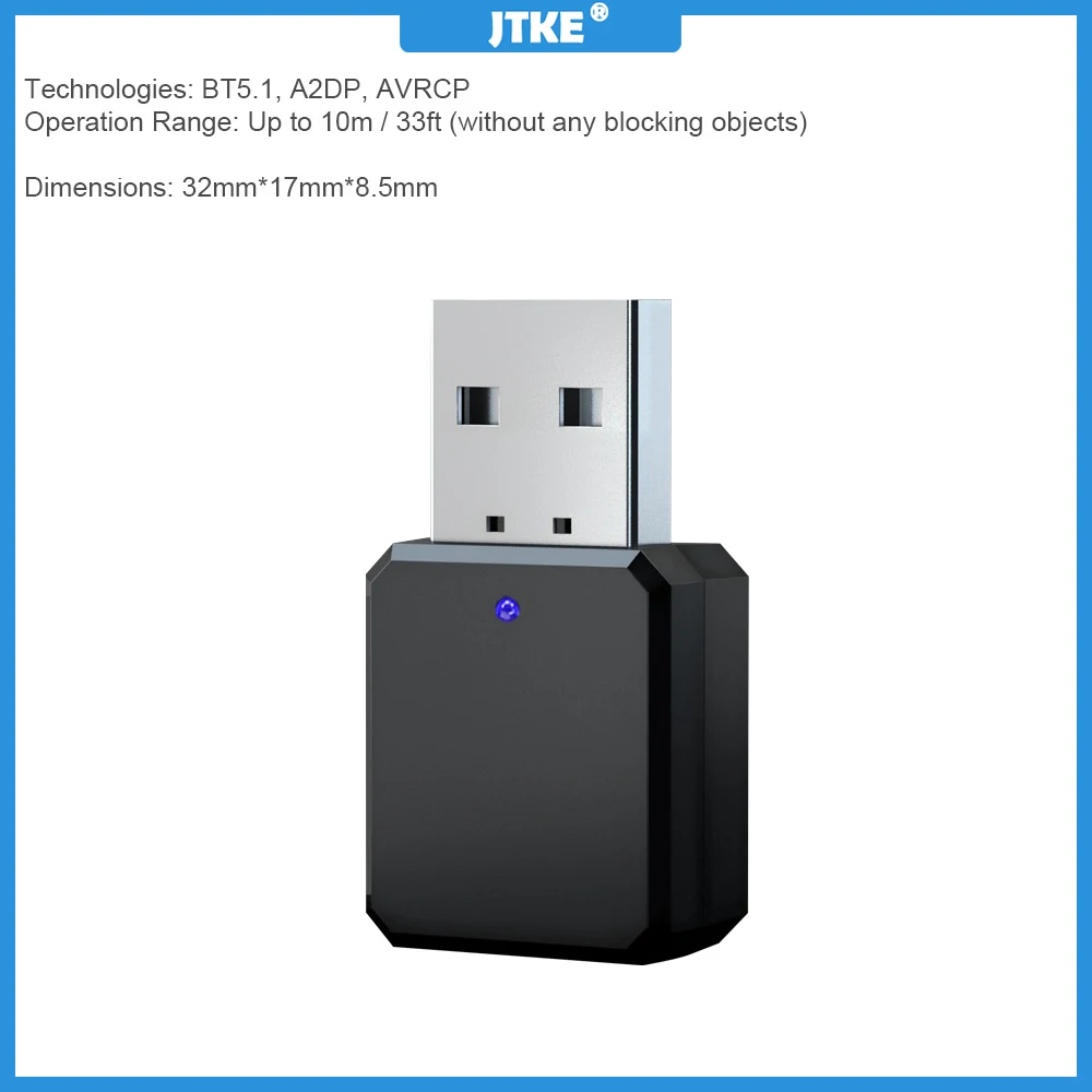 Беспроводной адаптер JTKE USB для приемника Bluetooth 5,0, Музыкальные динамики с микрофоном, 3,5 мм AUX автомобильный стерео аудио адаптер