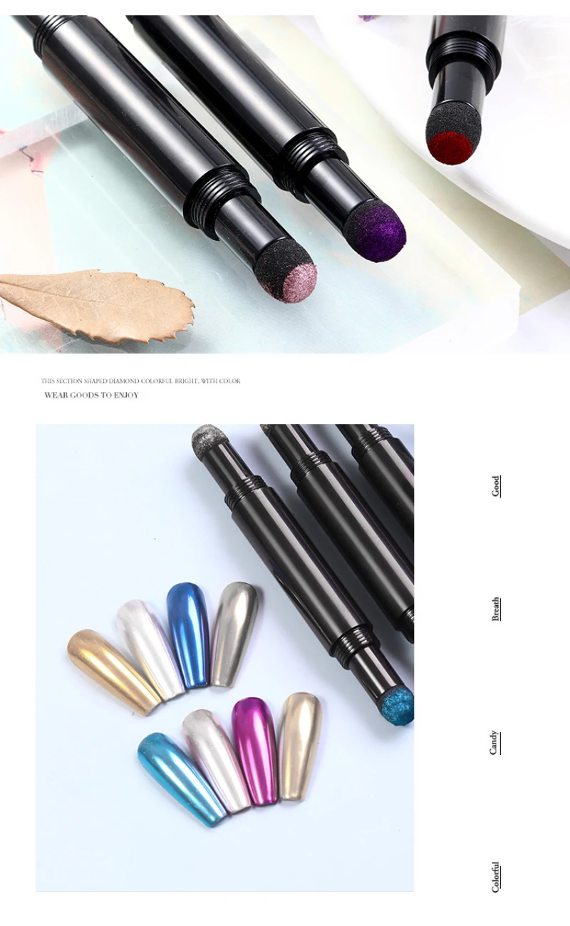Двухсторонняя ручка для ногтей в форме пудры, лазерная зеркальная ручка для ногтевого дизайна, блестящая ручка, разноцветная хромированная голографика, аксессуары для дизайна ногтей