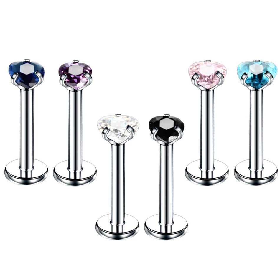 Серьга-гвоздик для пирсинга губ, ювелирное изделие из нержавеющей стали с кристаллами и цирконием для прокола хрящевой ткани козелка ушной раковины, бижутерия для тела, 1 шт.