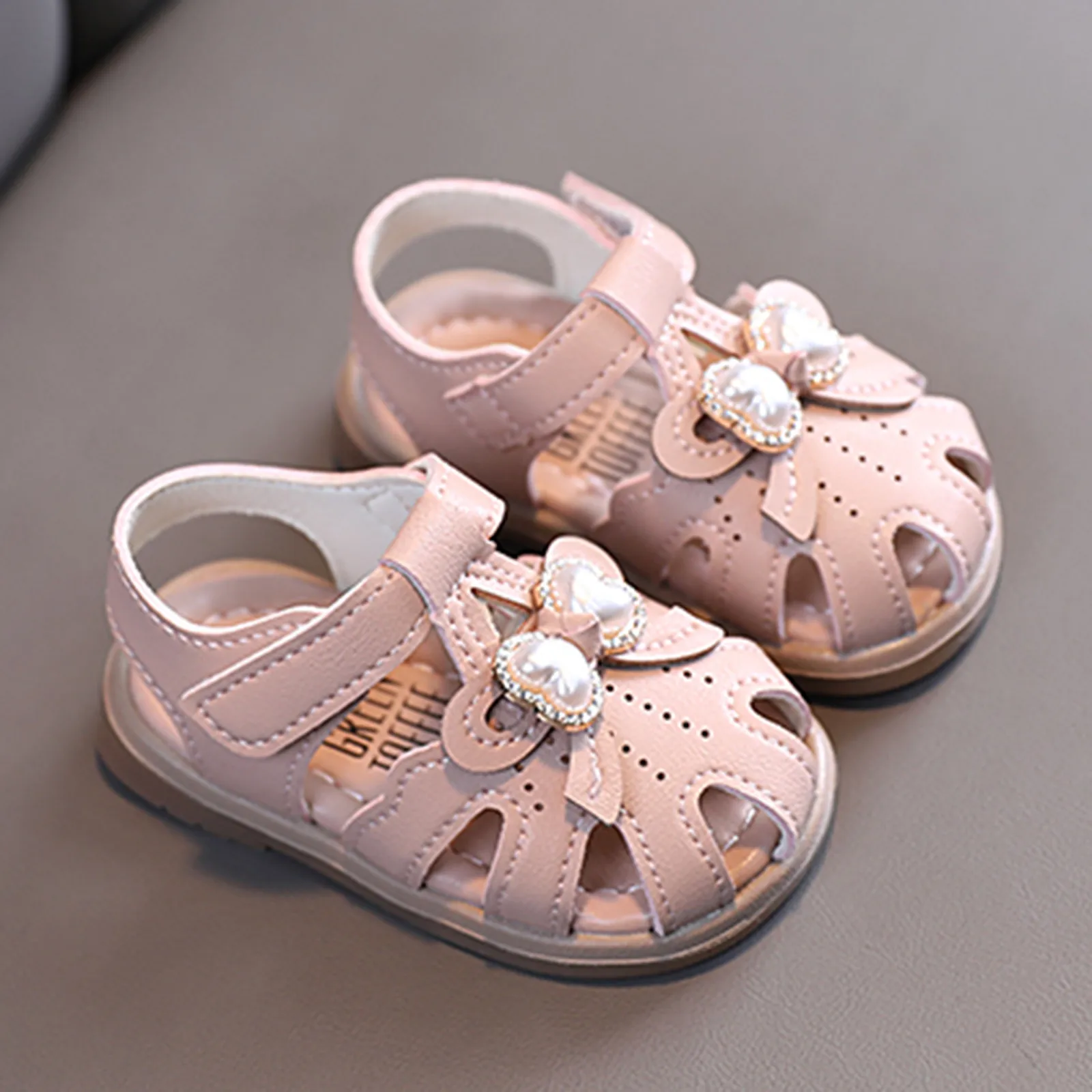 Сандалии принцессы для девочек; Кожаная обувь принцессы с жемчужным бантом для маленьких девочек; Сандалии для маленьких детей; Для первых прогулок