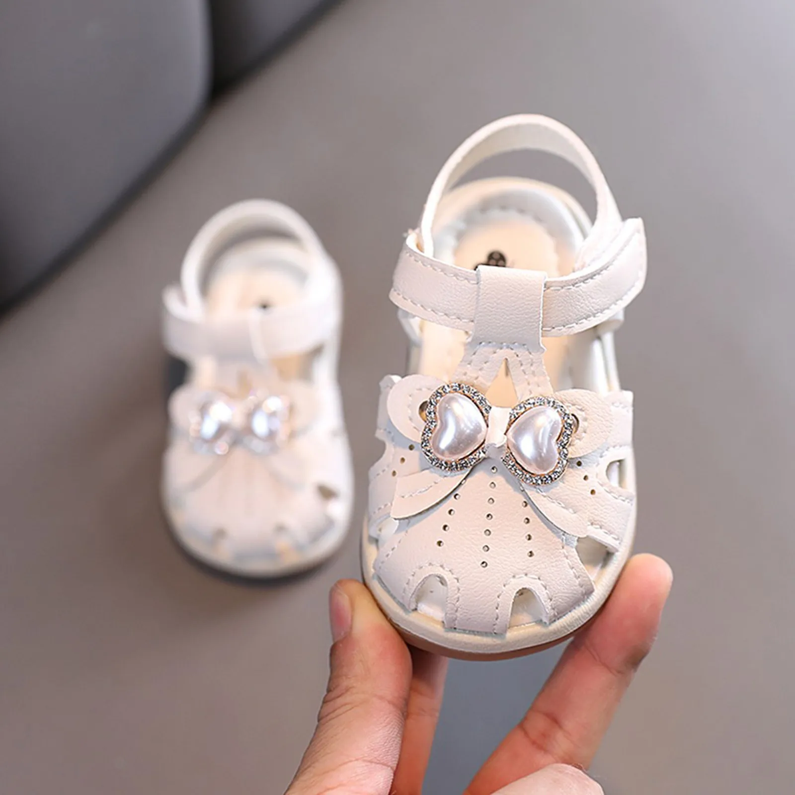 Сандалии принцессы для маленьких девочек, кожаные босоножки с жемчугом и бантом для маленьких принцесс, для начинающих ходить детей
