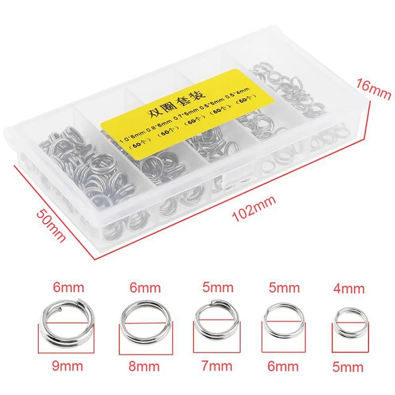 250 шт., нержавеющая сталь, двойная петля, рыболовное кольцо, сплит-зажим, поворотный, быстро меняющийся, крюк, разъем, рыболовная приманка, инструмент для приманки с коробкой
