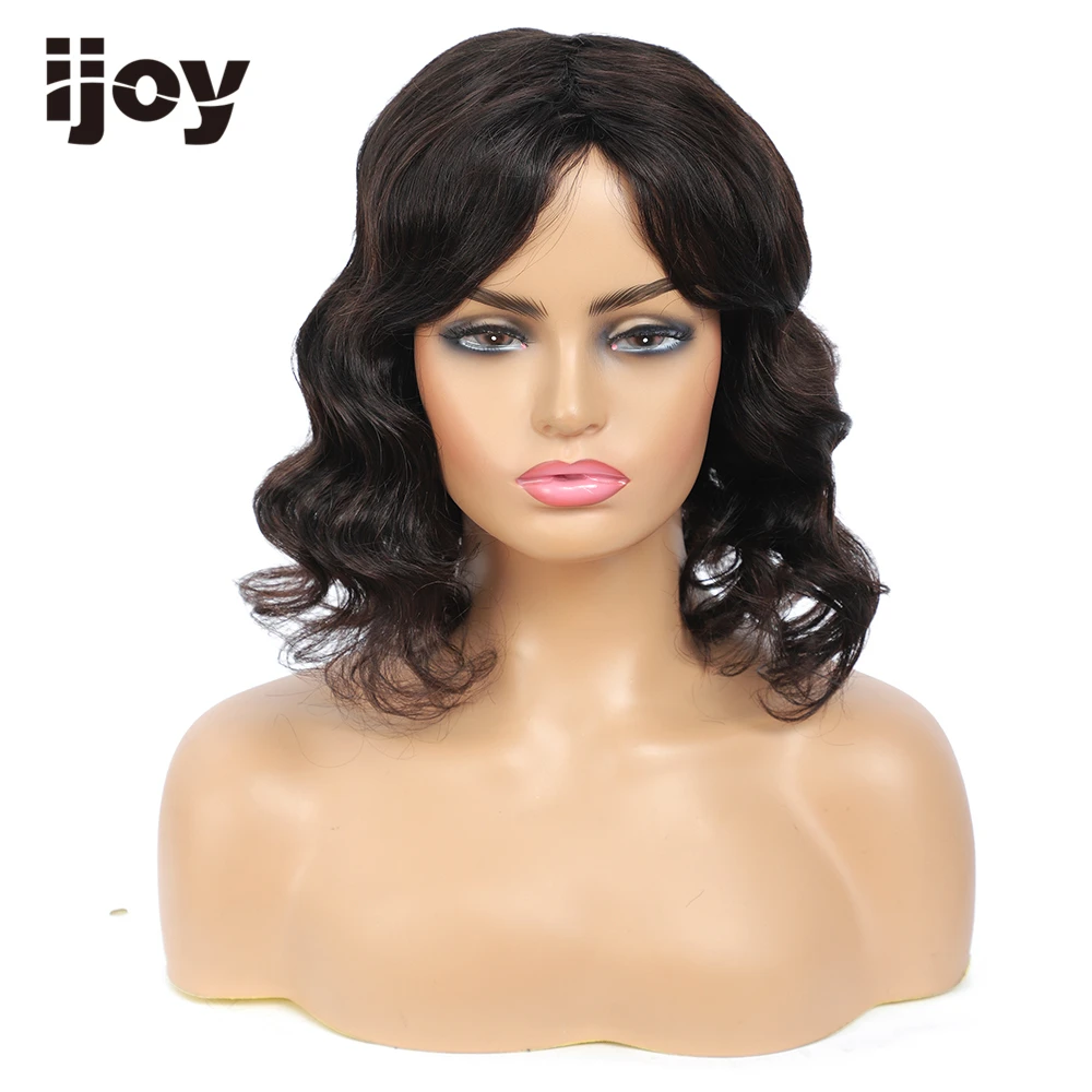 Парик из натуральных волос IJOY, с челкой, волнистый, окрашенный, т...