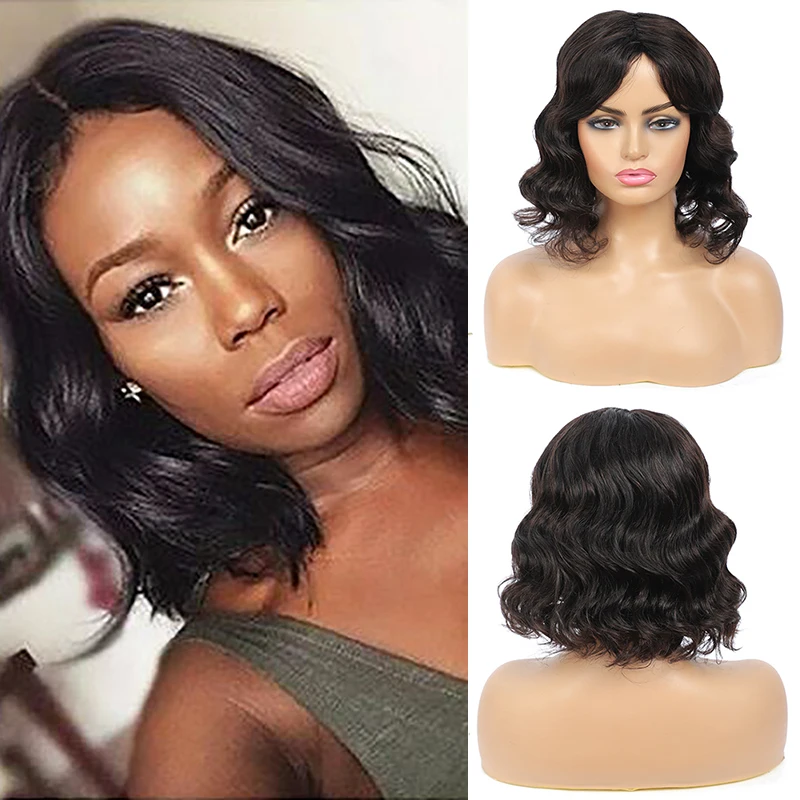 Короткие парики с челкой естественного цвета, бразильские прямые че...