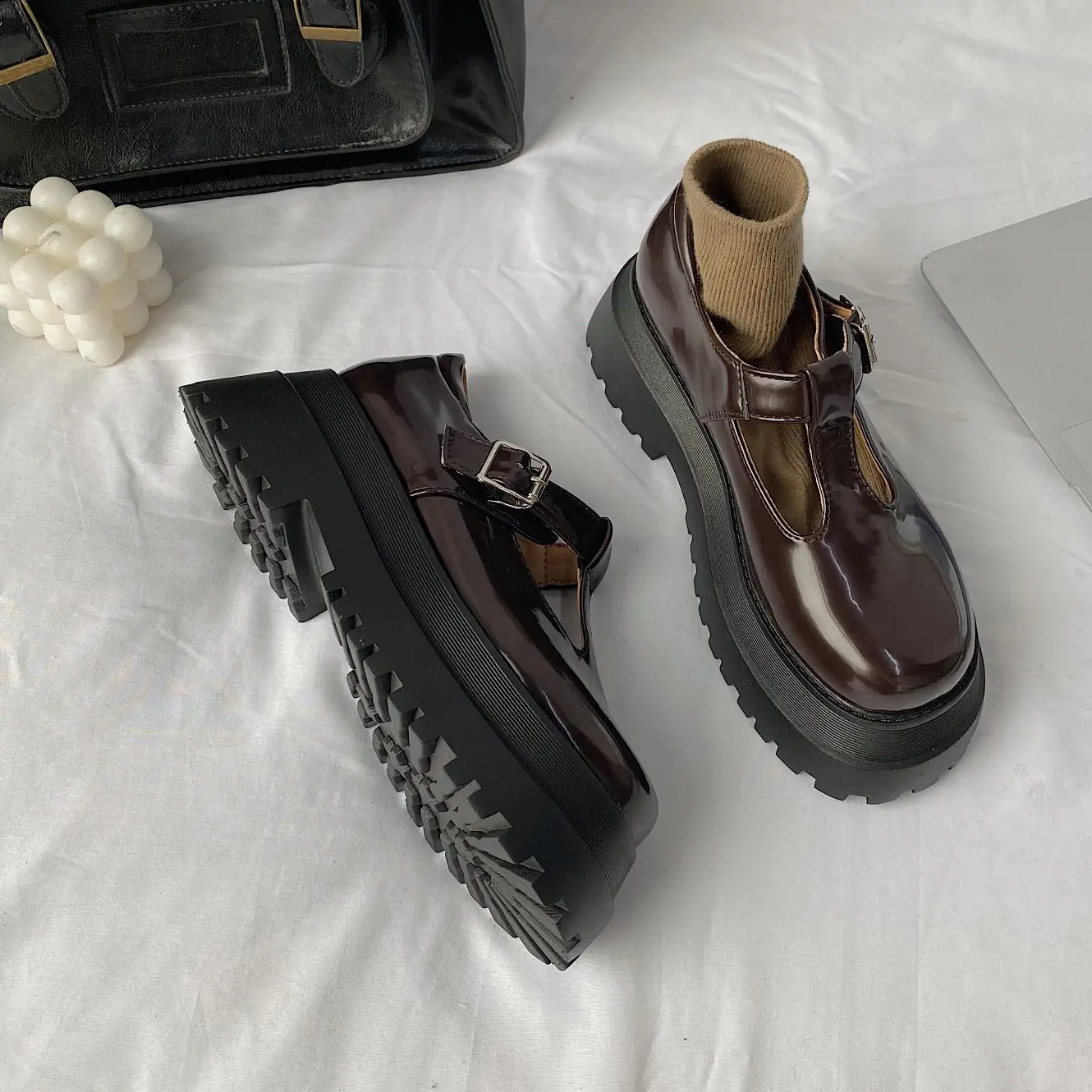 Туфли Лолиты; Женские кожаные туфли на платформе; Повседневные Туфли Мэри Джейн с пряжкой; Женские балетки на танкетке; Женские мокасины; Обувь kawaii