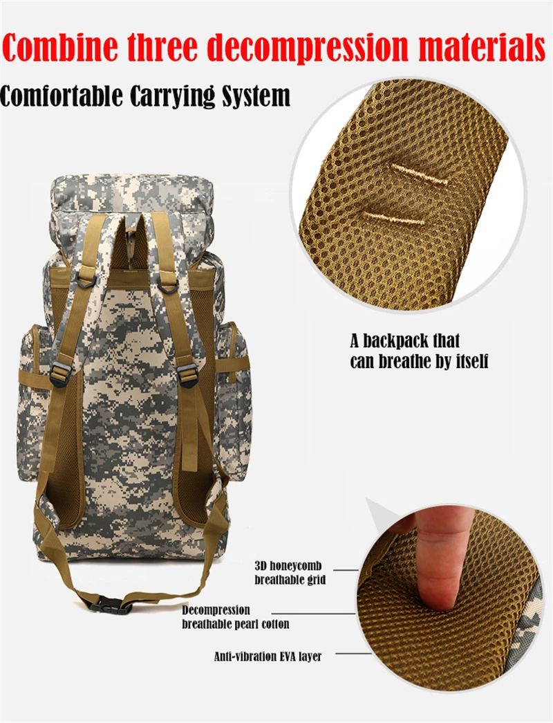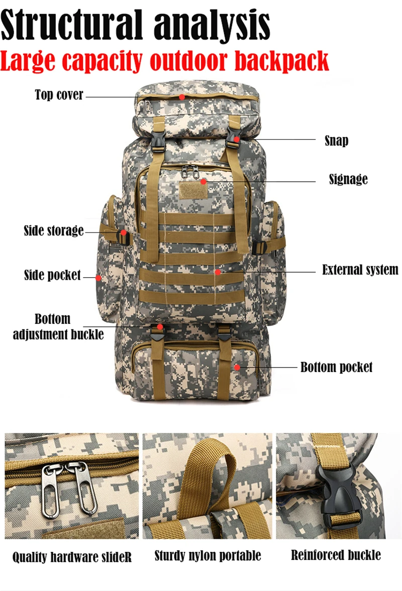 Уличный камуфляжный рюкзак 70 л, тактический рюкзак, сумка для альпинизма, мужская спортивная сумка, рюкзак для походов, кемпинга, охоты