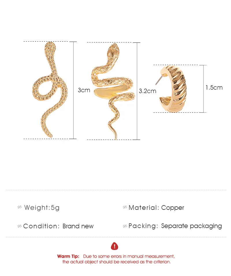 Серьги-Змеи в стиле ретро, крутой ветер, модный Комплект из трех пр...