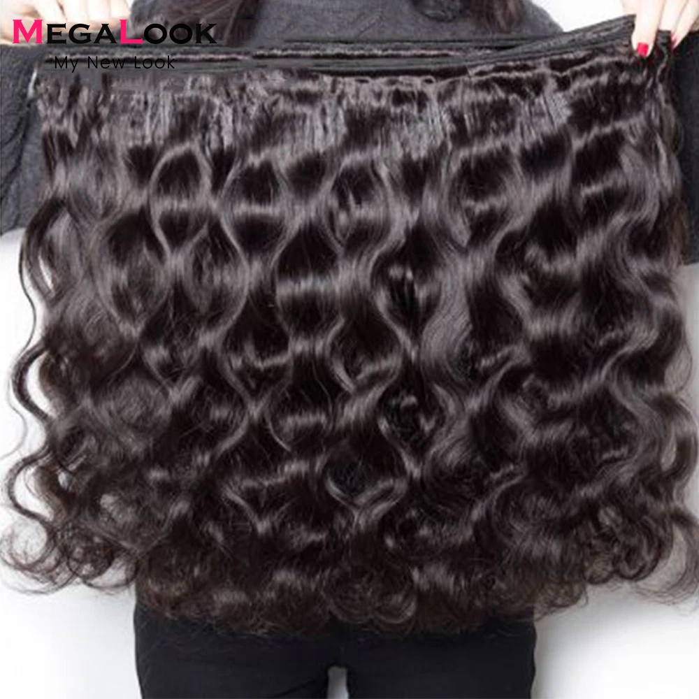 30 инч объёмная волна 3 пряди Megalook бразильские виргинские волосы пряди натуральных Цвет 100% Пряди человеческих волос для наращивания двойные вытянутые волосы