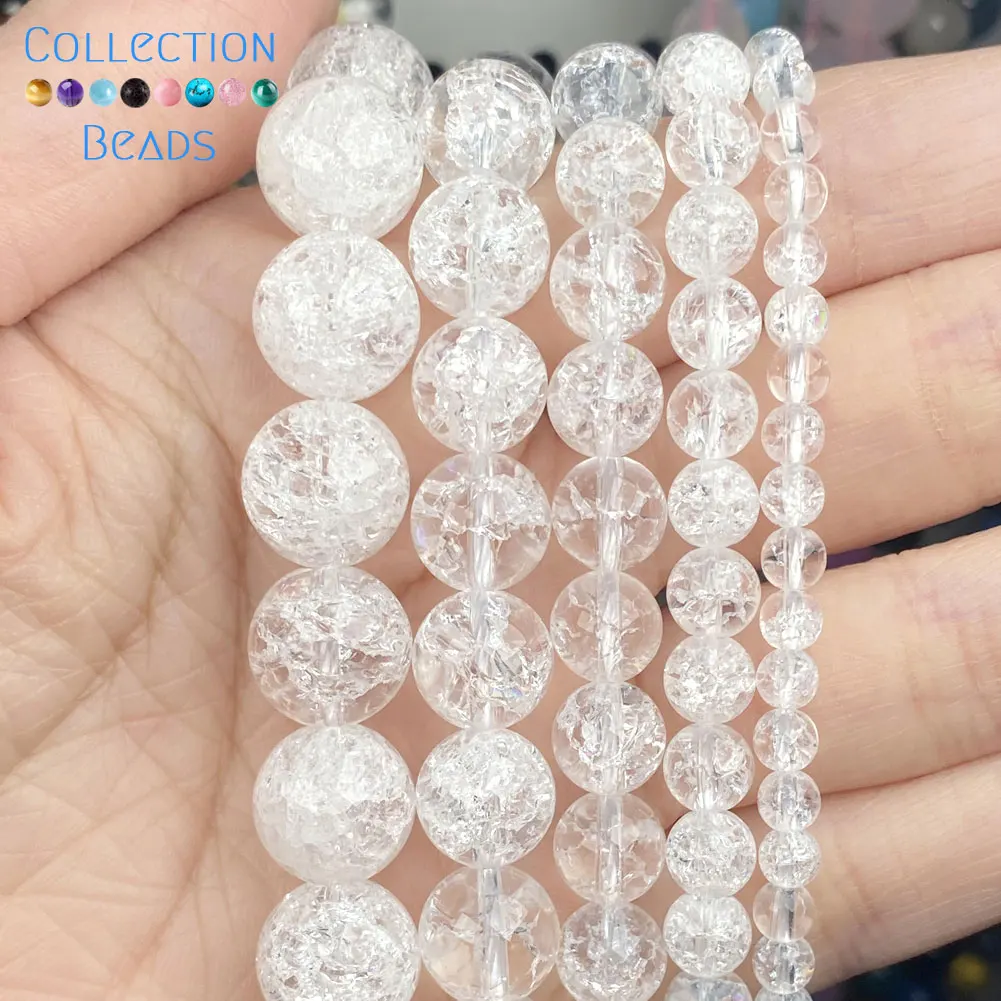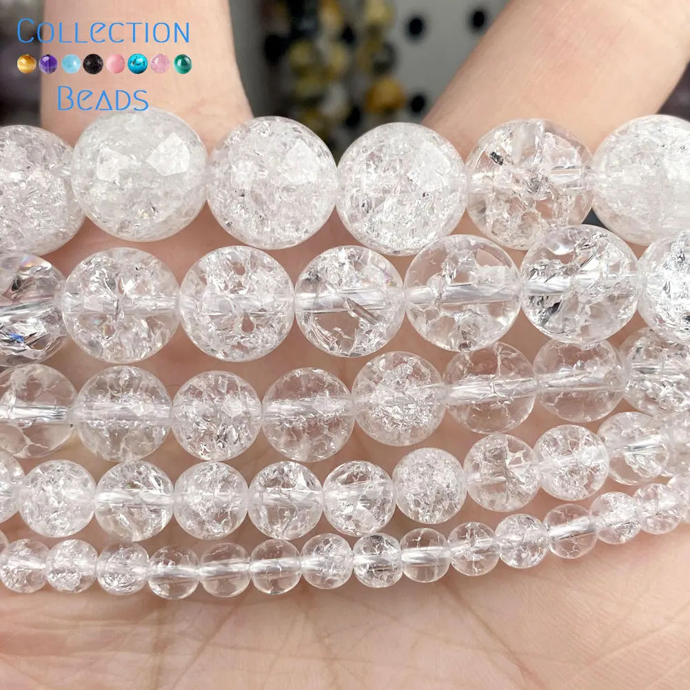 Круглые бусины из прозрачного треснутого кварца, незакрепленные бусины из натурального камня для изготовления ювелирных изделий 4-12 мм, аксессуары сделай сам для браслетов, оптовая продажа, 15 дюймов