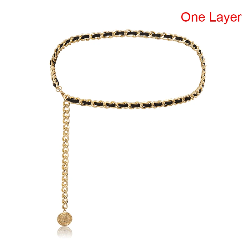 Женский модный ремень, высокая талия, узкая металлическая цепочка, ...
