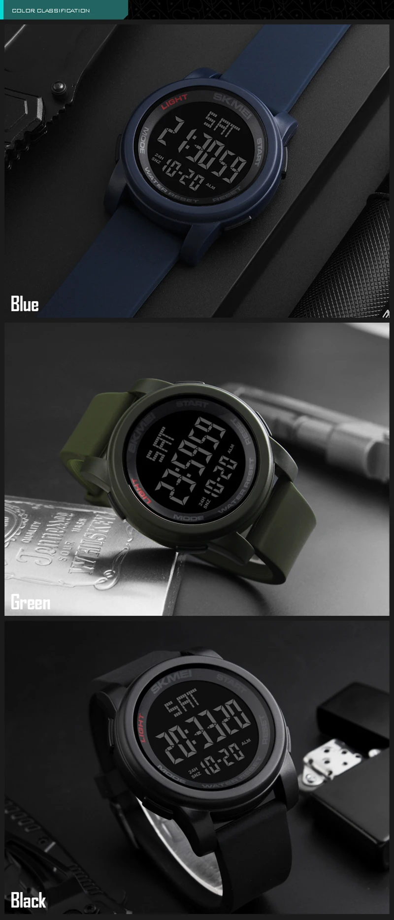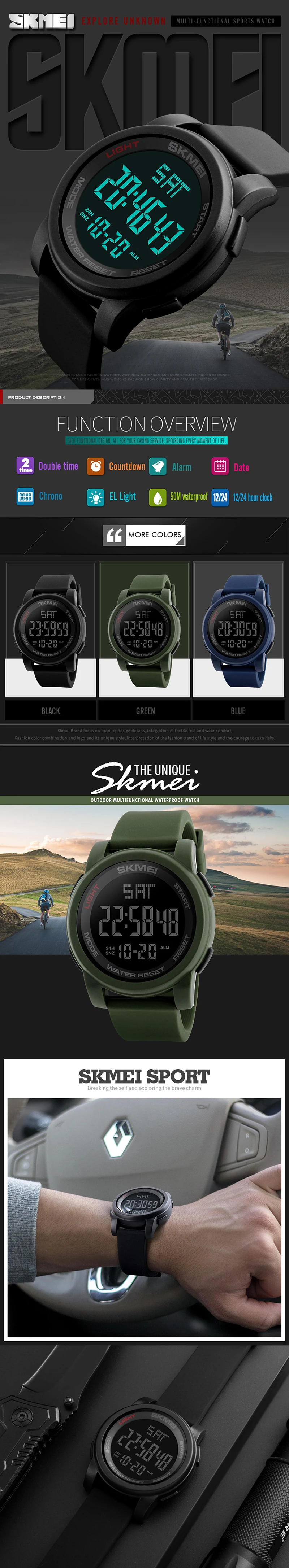 Часы SKMEI Мужские Цифровые с будильником, многофункциональные спортивные водонепроницаемые с силиконовым ремешком, 1257 светодиодный