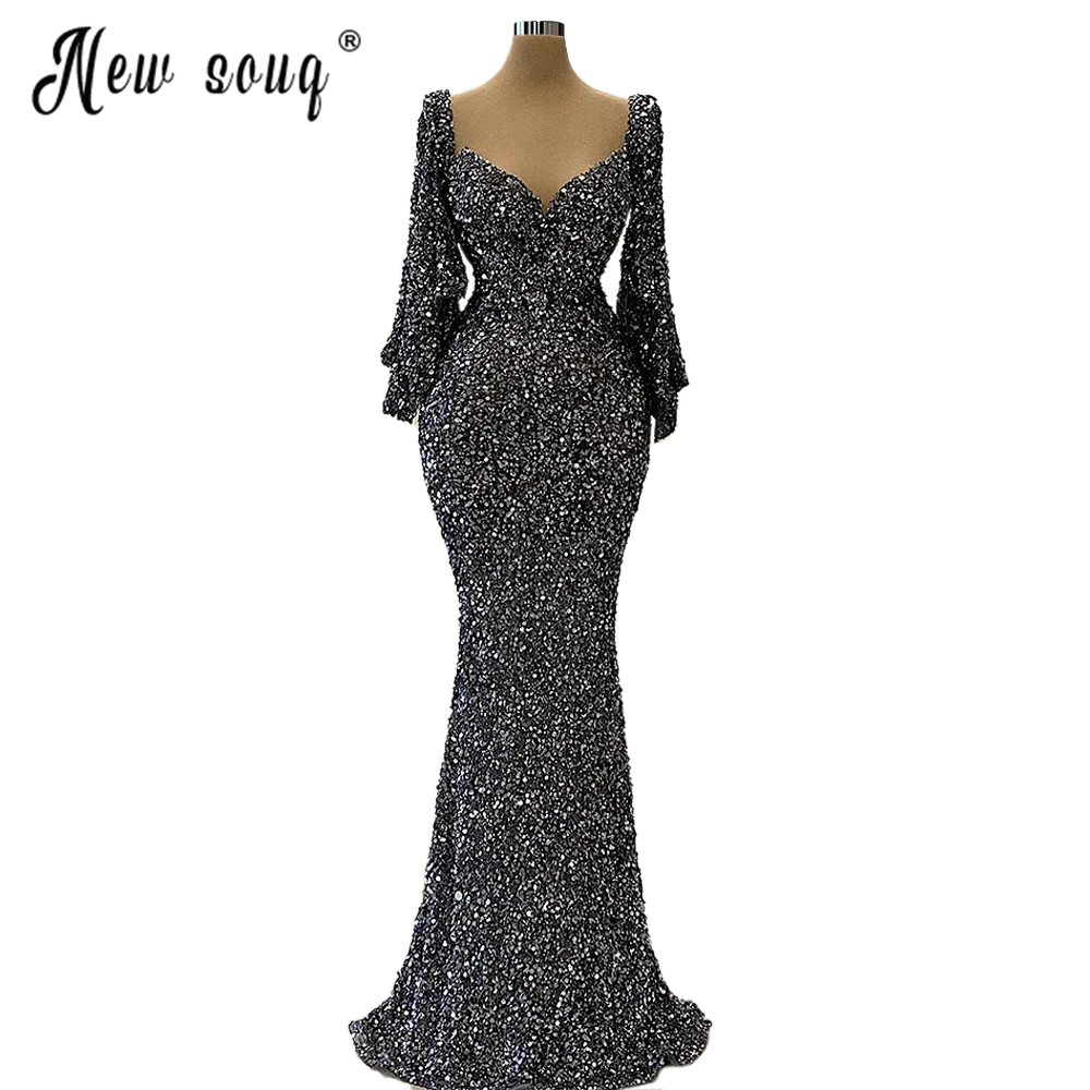 Африканские вечерние платья со блестками бисером Русалка арабское выпускное платье Robe De Soiree с длинным рукавом Формальное вечернее платье размера плюс