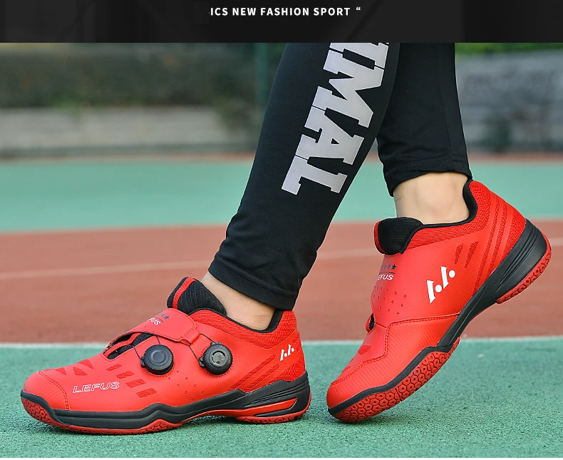 Мужские красные кожаные кроссовки для бадминтона, с быстрой шнуровкой