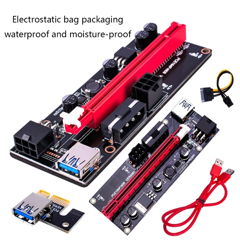 100% новый товар высокого качества.OOTDTYОсобенности:Наборы переходников версии 009S-это новейшее и верхнее линейное решение для настройки горных установок GPU. 4PIN и две графические карты 6PIN интерфейс являются необязательными для питания, что обеспечивает независимое питание графической карты и уменьшает нагрузку на материнскую плату при использовании большего количества графических карт. 4 твердотельных конденсатора, 60 см Кабель USB 3,0, подходит для всех W-indow систем, L-INUX и M-AC.Идеально подходит для установки горных установок эфириума4PIN и две графические карты 6PIN интерфейс являются дополнительными для питания180 градусов PCI-E к USB адаптеру, легко устанавливается.Высокое качество 60 см USB 3,0 кабельВысококачественный Кабель питания SATA 15 Pin на 6 PinХарактеристики:Материал: мательЦвет: как показано на фотографииРазмеры платы: 130 мм x 44 мм x 12 ммКоличество: 1 шт.Примечание:Пожалуйста, учитывайте погрешность 0-1 мм из-за ручного измерения, пожалуйста, убедитесь, что вы не возражаете, прежде чем сделать ставку.Из-за разницы между мониторами изображение может не отражать фактический цвет изделия. Спасибо!Посылка включает в себя:1x PCI-E 16X подъемная плата,1x PCI-E 1X адаптер карты,1x60 см USB 3,0 кабель,1x SATA 15 Pin на 6 Pin кабель питания