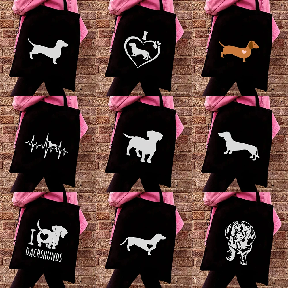 Женские сумки, Холщовая Сумка-тоут, принт "Такса", сумки через плечо для покупателей, для женщин, 2021, сумки для покупок, продуктовый мешочек, подарок для женщин