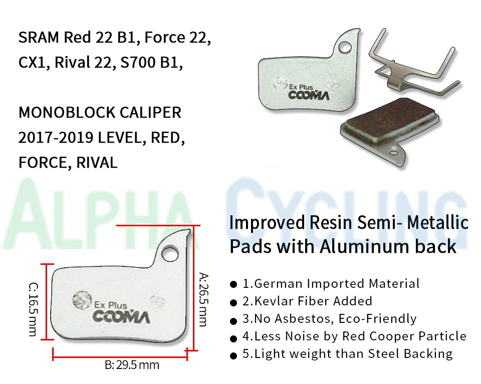 Велосипедные дисковые Тормозные колодки Ex Plus 4 пары для SRAM Red 22 B1, Force 22, CX1, Rival 22, S700 B1, улучшенная Резина из алюминиевого сплава