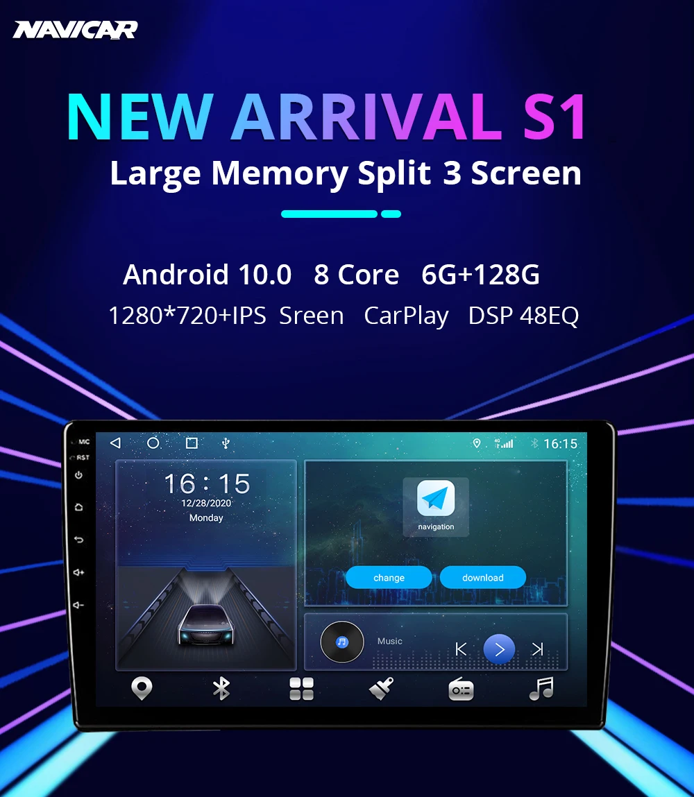 Автомобильный мультимедийный плеер, четырехъядерный процессор, Andr...