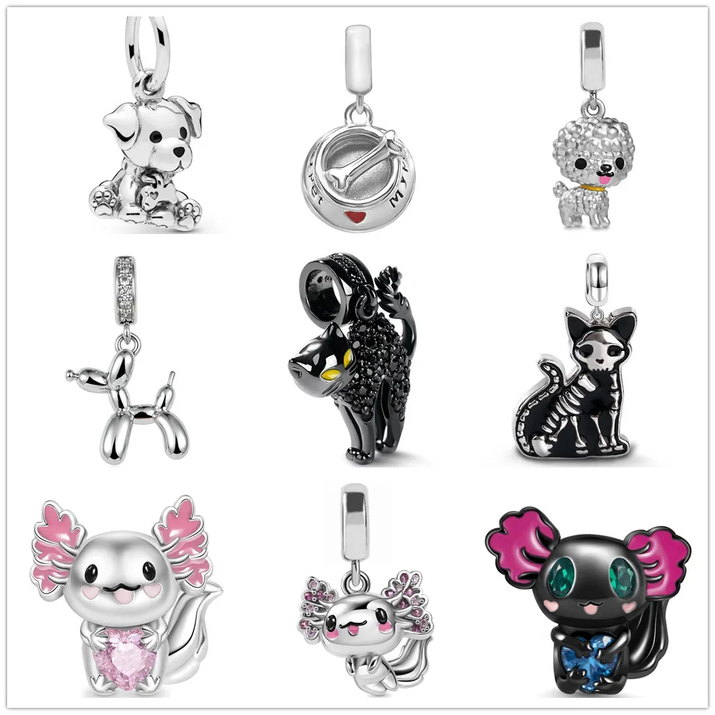 Блестящий браслет в виде кошек и бульдогов, серебро 925 пробы