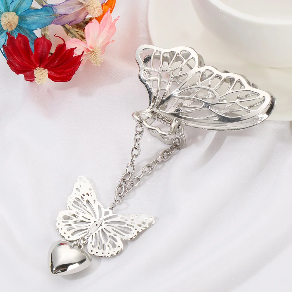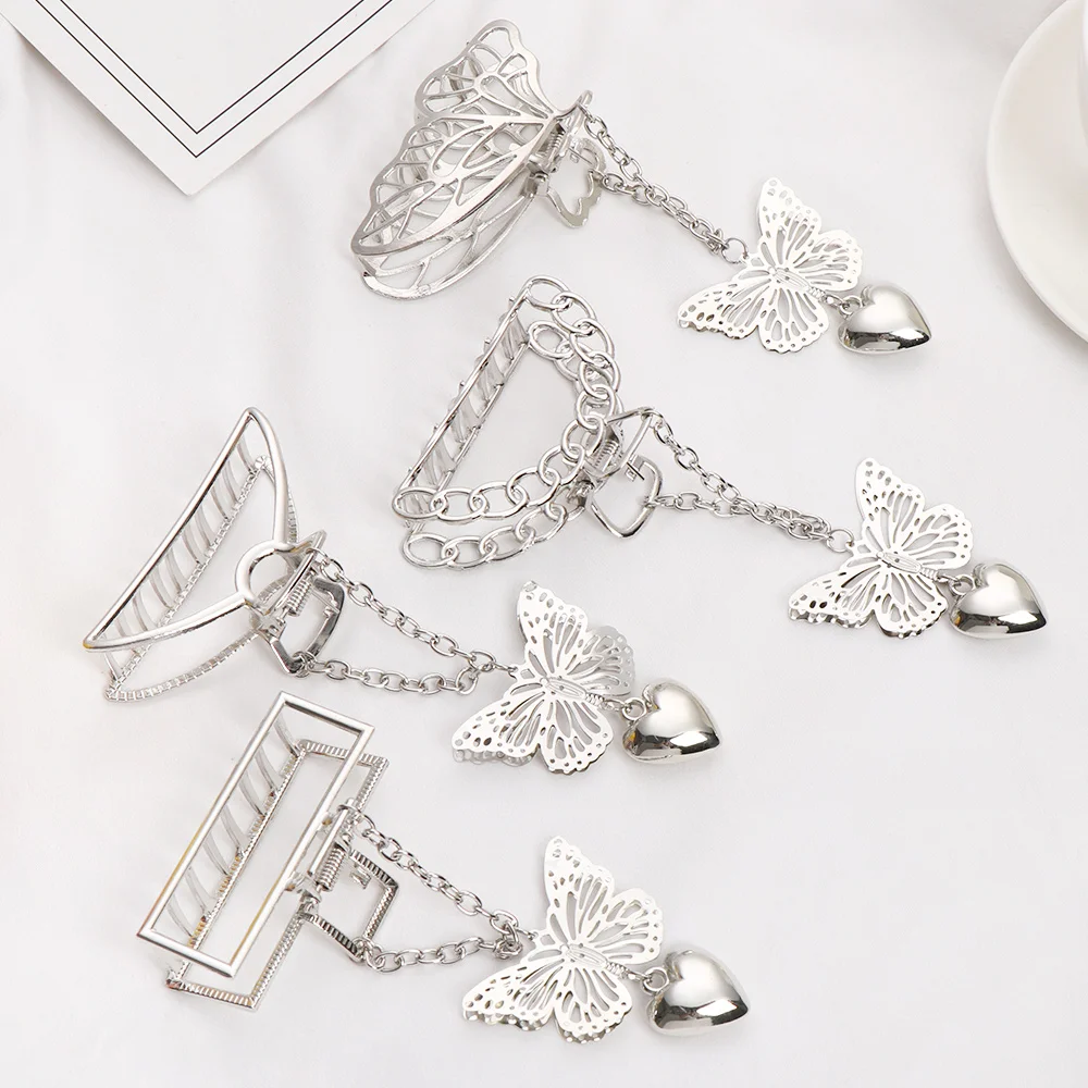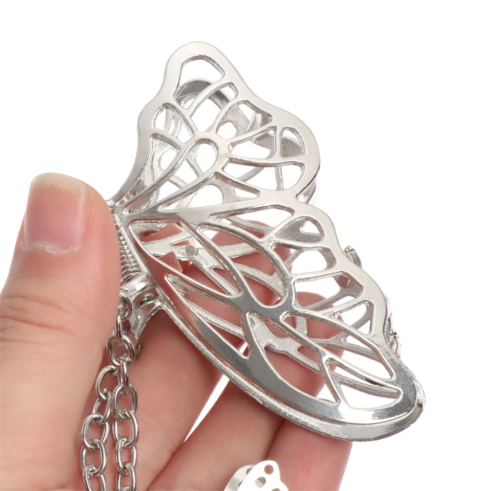 Женские Винтажные заколки для волос, золотистыесеребристые металлические заколки с бабочкой и кисточкой, элегантные аксессуары для волос