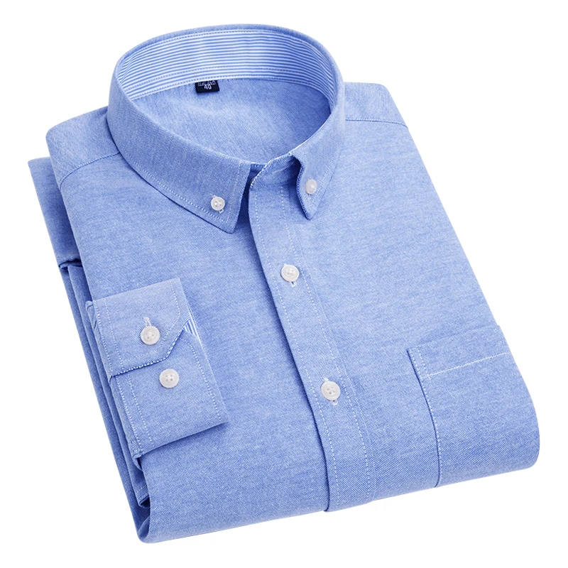 Рубашка мужская однотонная из 100% хлопка, с длинным рукавом